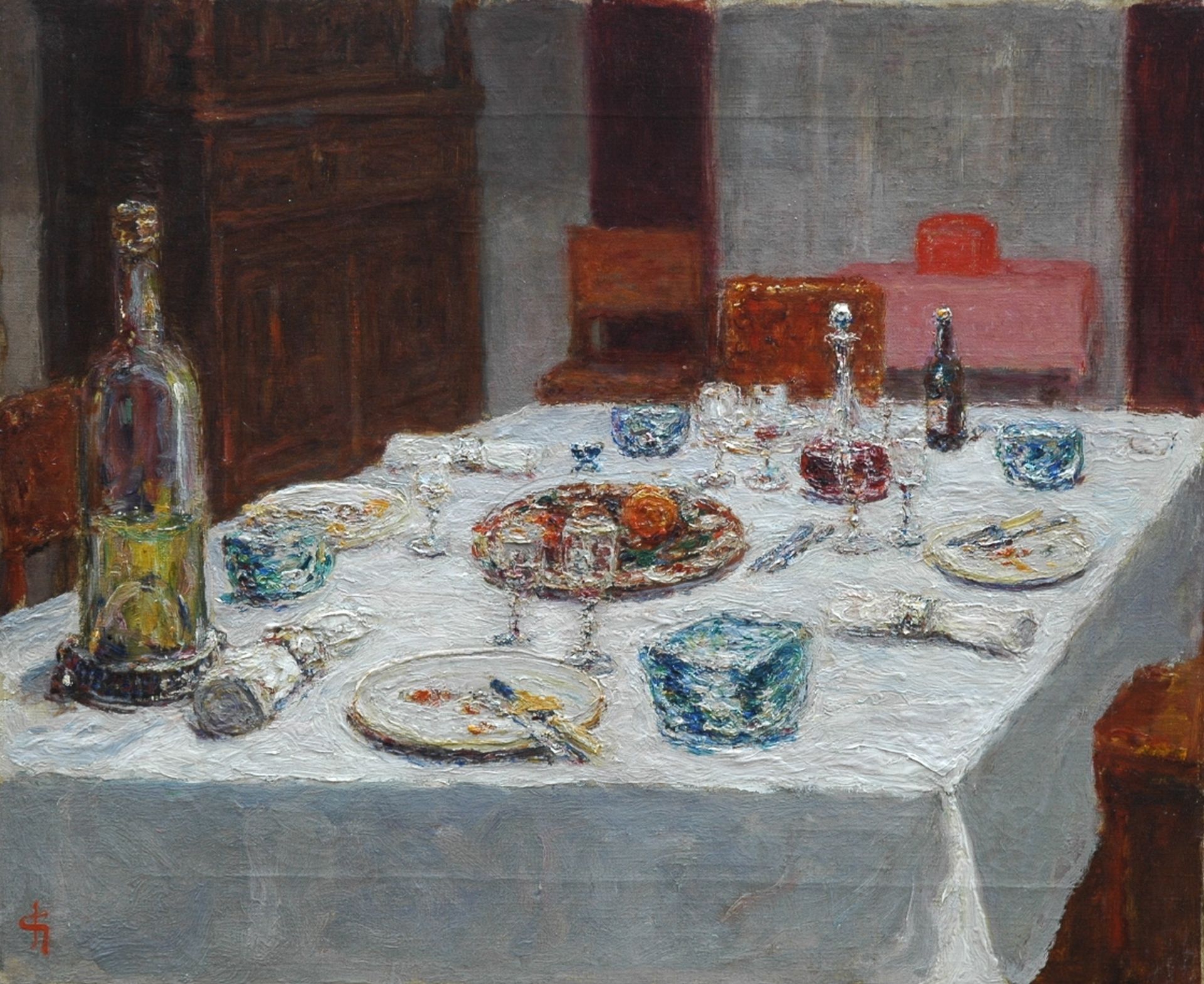 olieverf op doek 38,1 x 46,0 cm, gesigneerd linksonder met monogram