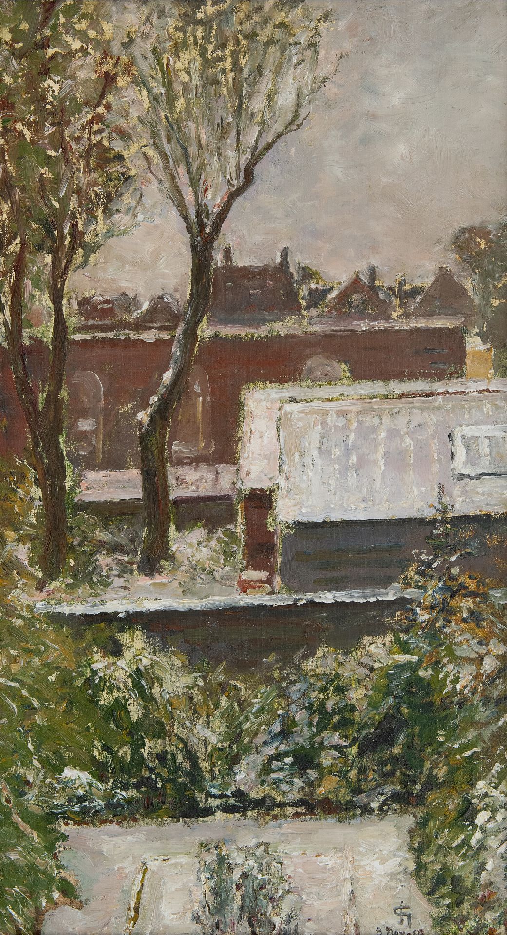olieverf op doek op board 45,6 x 25,0 cm, gesigneerd rechtsonder met monogram en gedateerd 3 nov. 19 (1919)