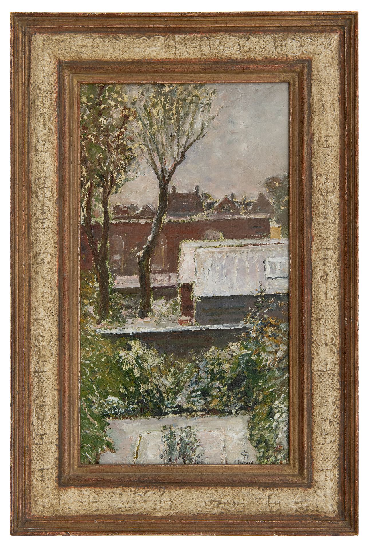 Carel Nicolaas Storm van 's-Gravesande kunstwerk • schilderij • te koop Gezicht op tuinen en huizen