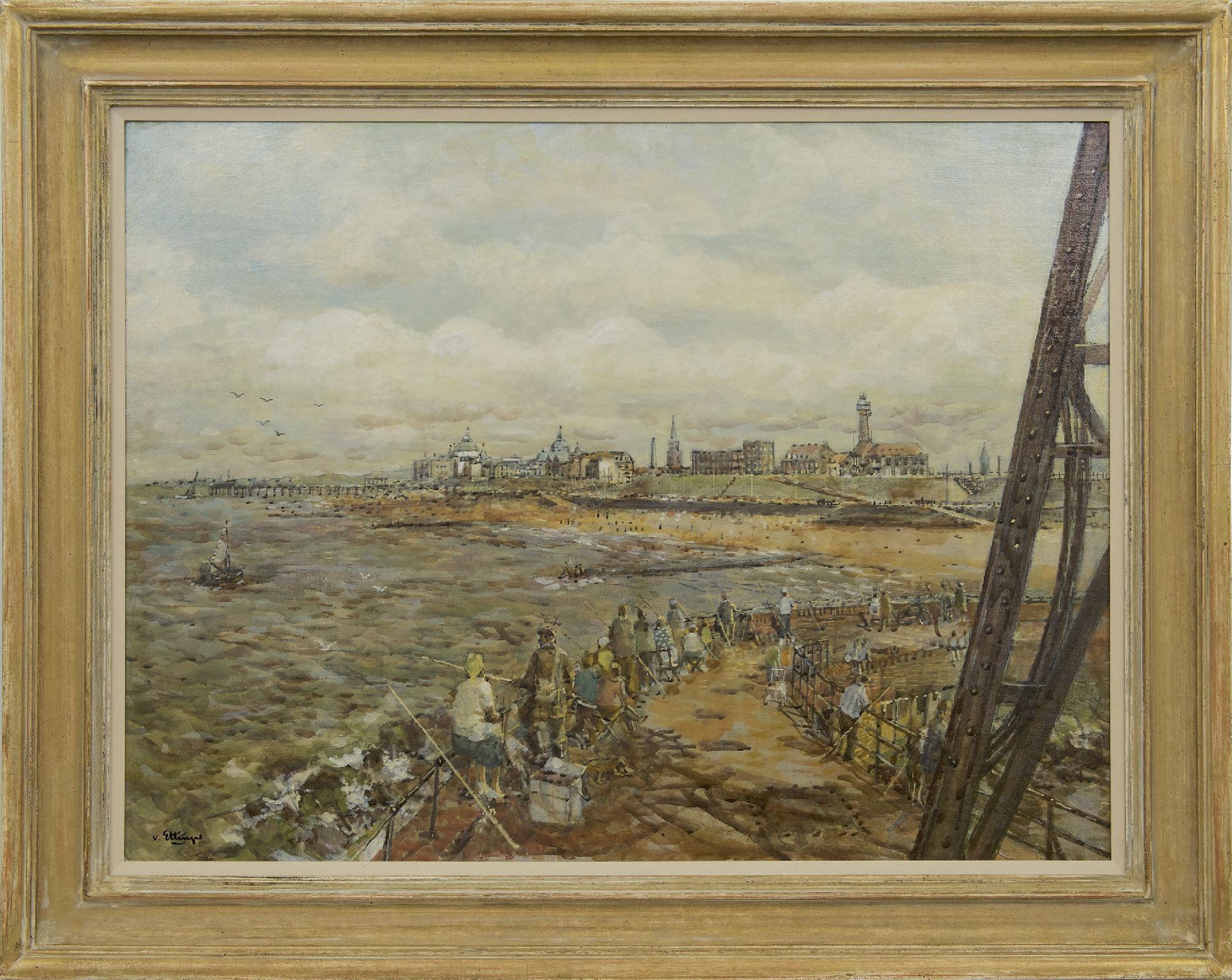 Carel van Ettinger kunstwerk • schilderij • voorheen te koop Scheveningen boulevard gezien vanaf het havenhoofd