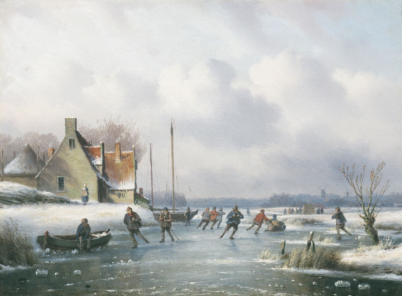 Carl Eduard Ahrendts kunstwerk • schilderij • voorheen te koop IJsgezicht met schaatsers