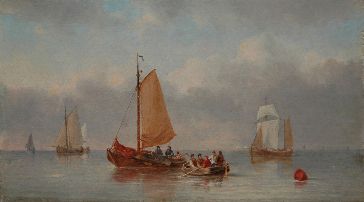 Carl Eduard Ahrendts kunstwerk • schilderij • voorheen te koop Platbodems op rustige zee