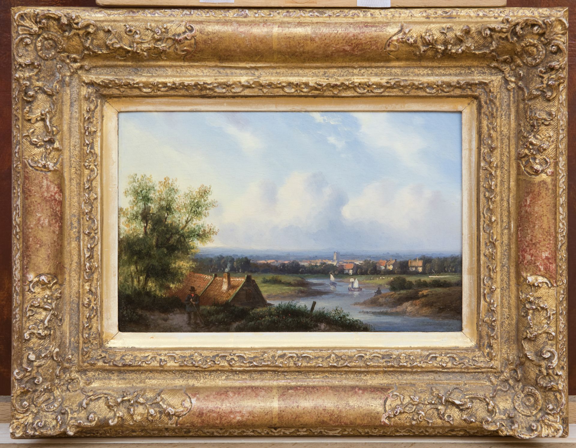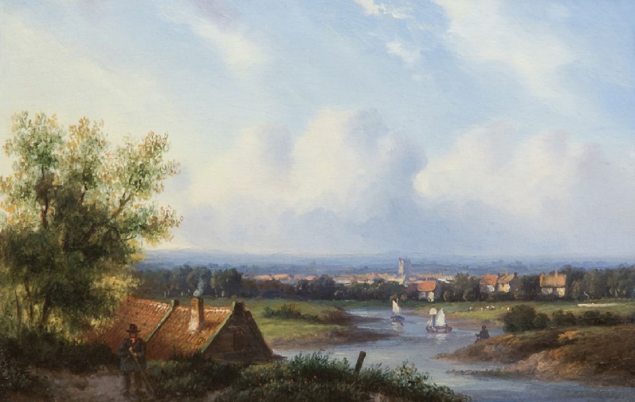 Carl Eduard Ahrendts kunstwerk • schilderij • voorheen te koop Zomers rivierlandschap