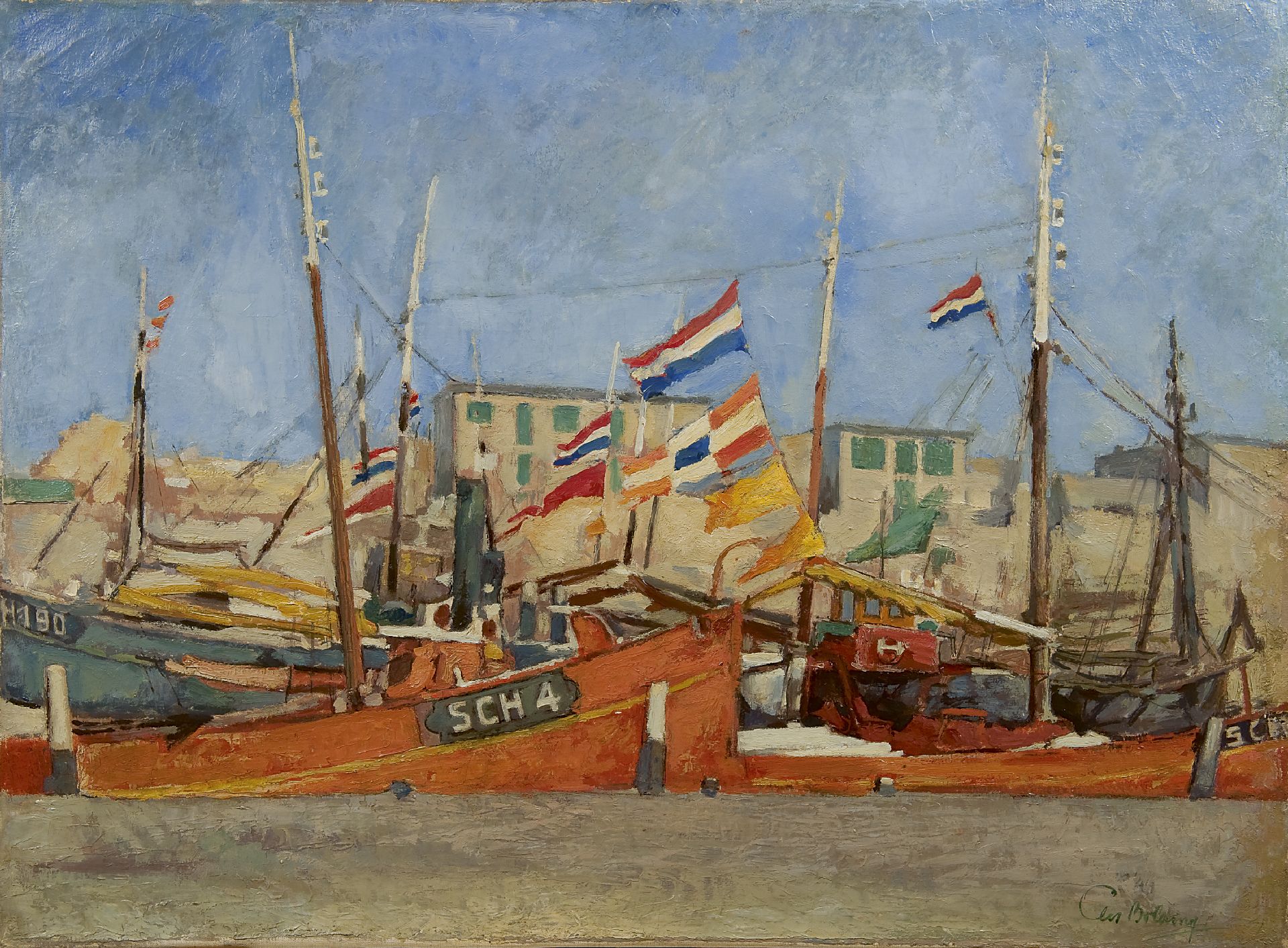 Cees Bolding kunstwerk • schilderij • voorheen te koop Vlaggetjesdag in Scheveningen