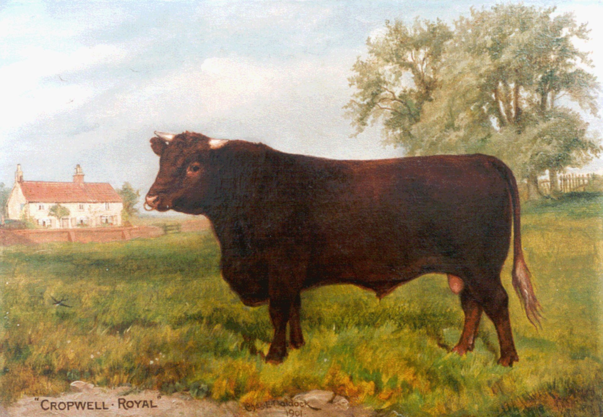 Charles Edwin M. Baldock kunstwerk • schilderij • voorheen te koop Cropwell Royal, portret van een stier
