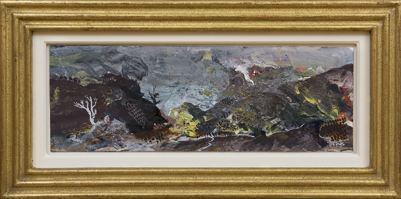 gouache op papier 12,7 x 35,6 cm, gesigneerd rechtsonder
