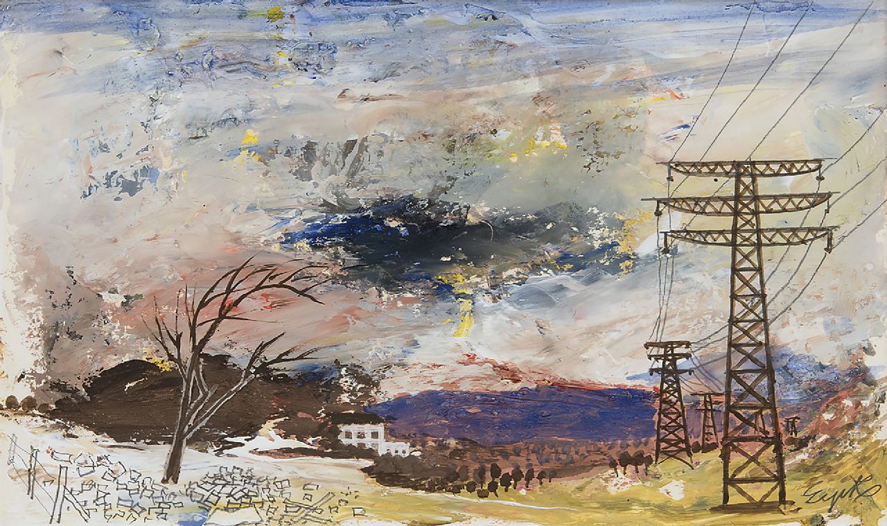 Charles Eyck kunstwerk • aquarel • tekening • voorheen te koop Heuvellandschap
