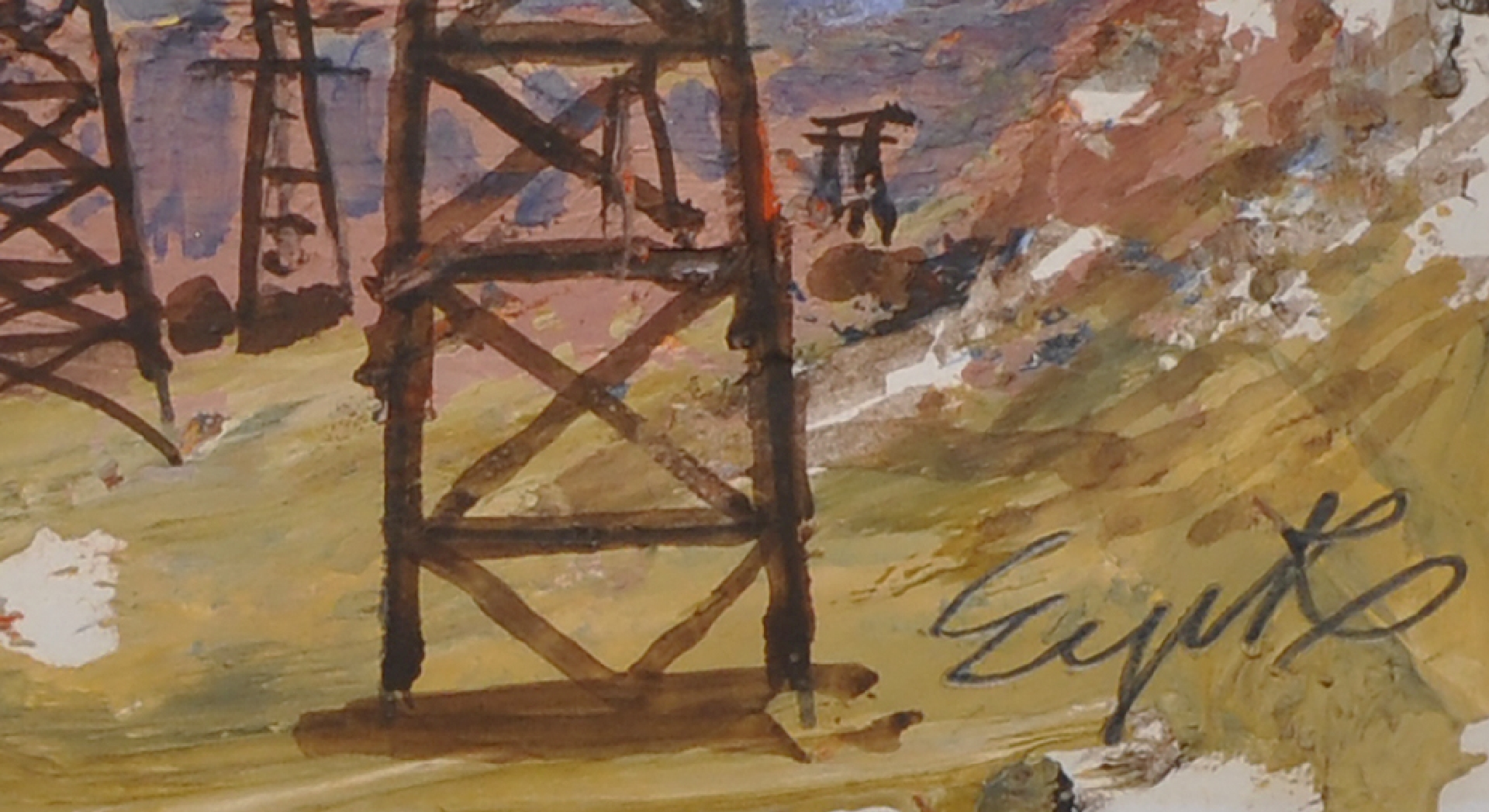 gouache op papier 17,8 x 29,5 cm, gesigneerd rechtsonder