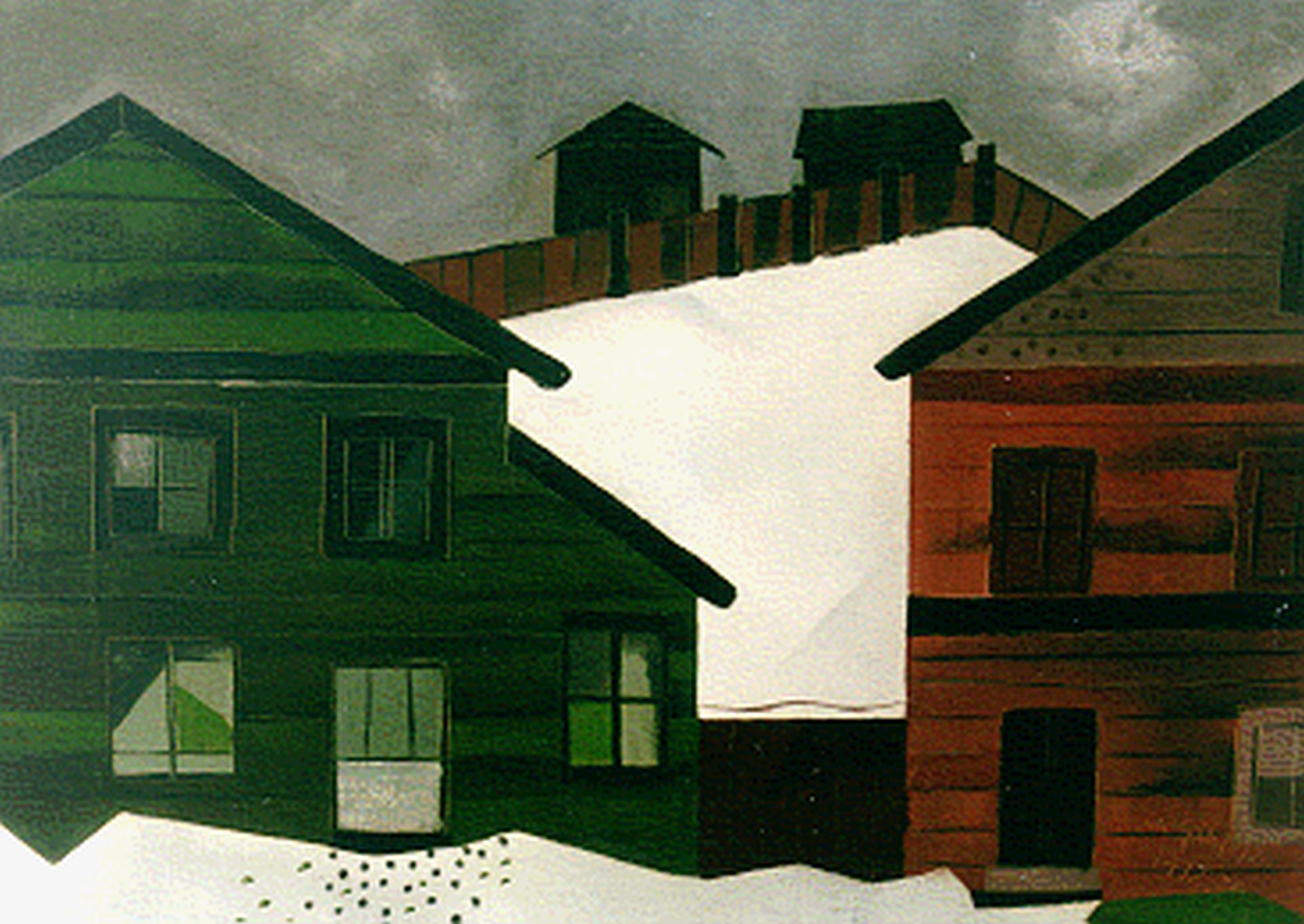 Charles Gaupp kunstwerk • schilderij • voorheen te koop Huizen in de sneeuw