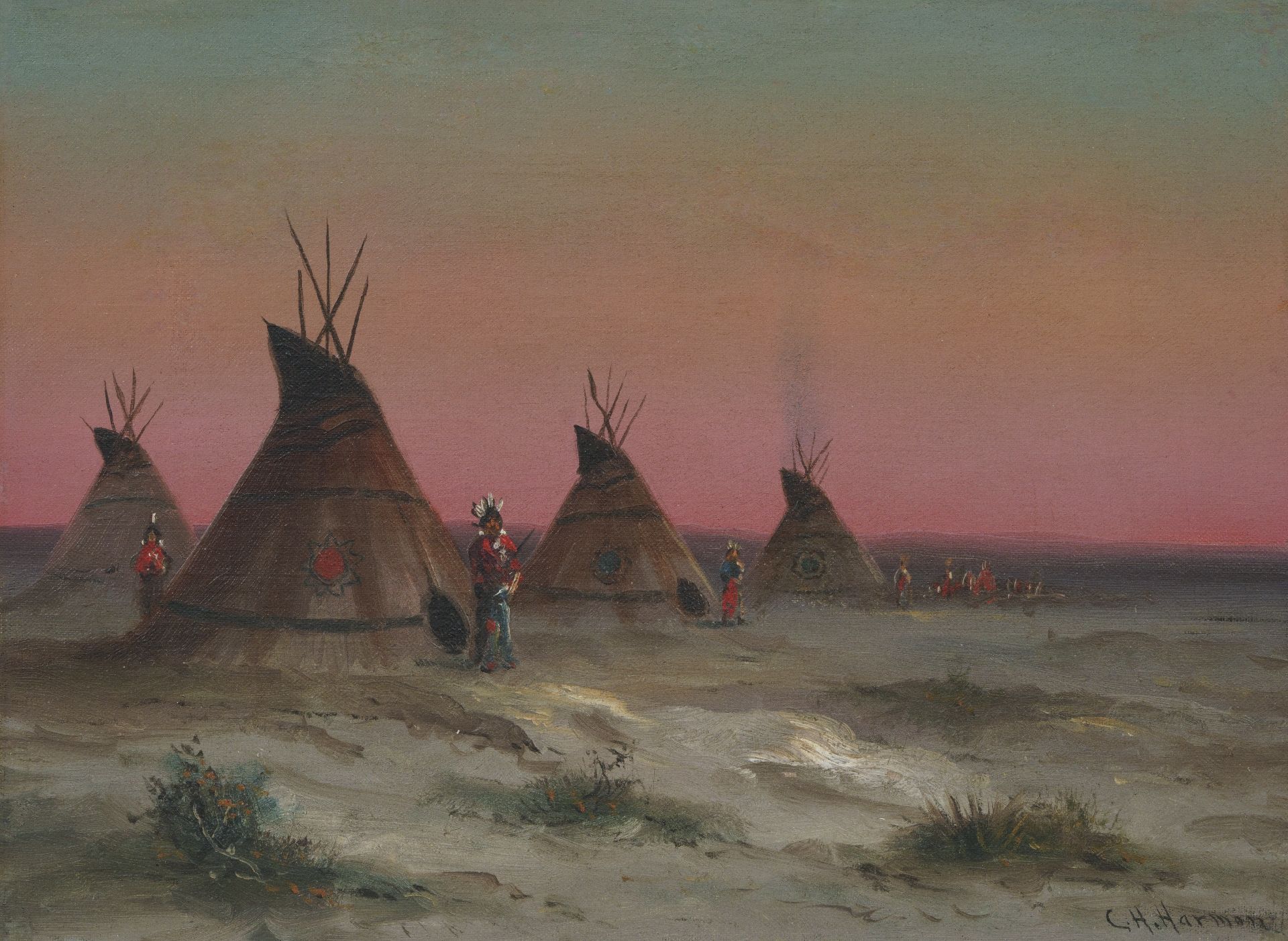 Charles Henry Harmon kunstwerk • schilderij • te koop Wigwammen met indianen