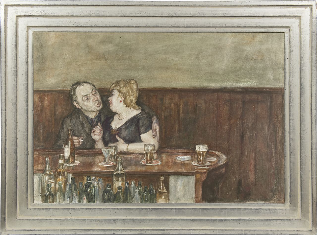 Charles Jean Kemper kunstwerk • aquarel • tekening • te koop De schilder Jan Burgerhout met geliefde in een café