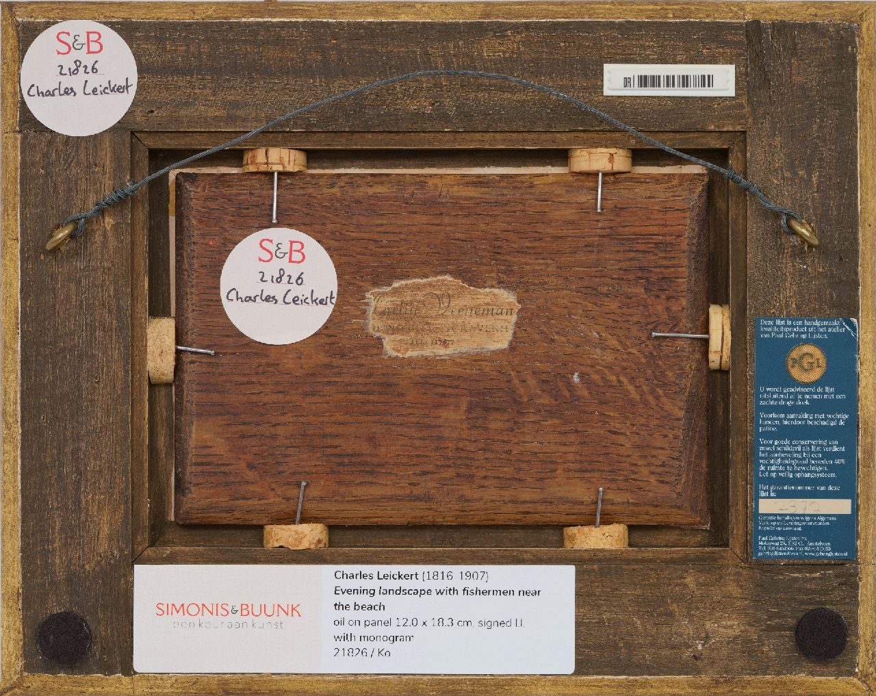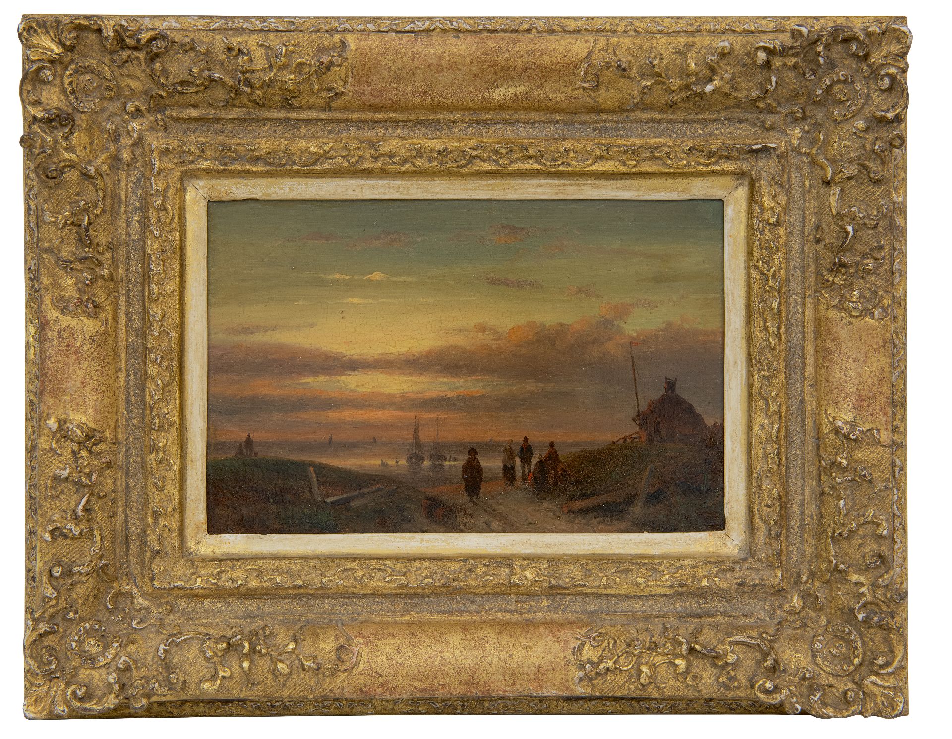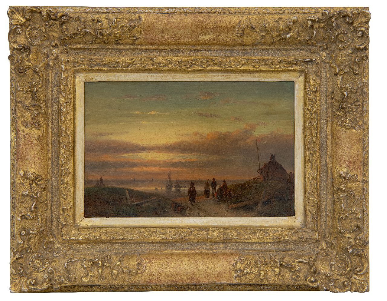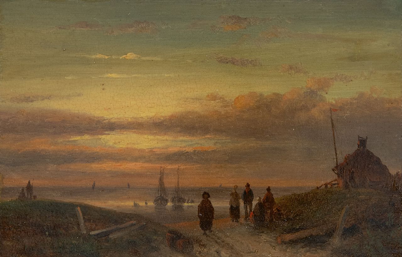 Charles Leickert kunstwerk • schilderij • te koop Avondlandschap met vissersvolk komend van het strand