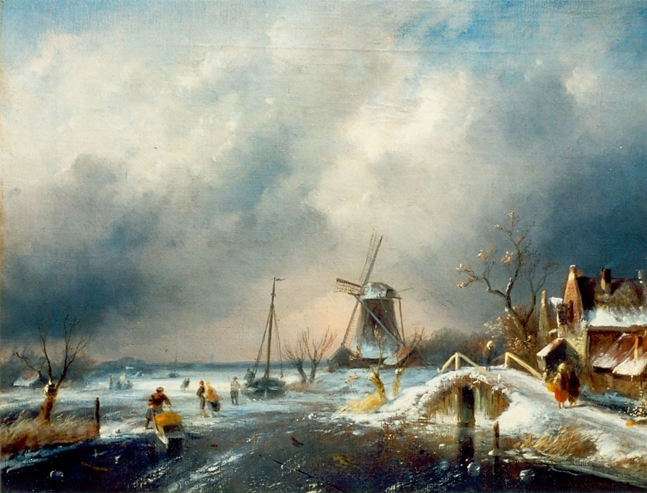 Charles Leickert kunstwerk • schilderij • voorheen te koop Hollands ijsgezicht