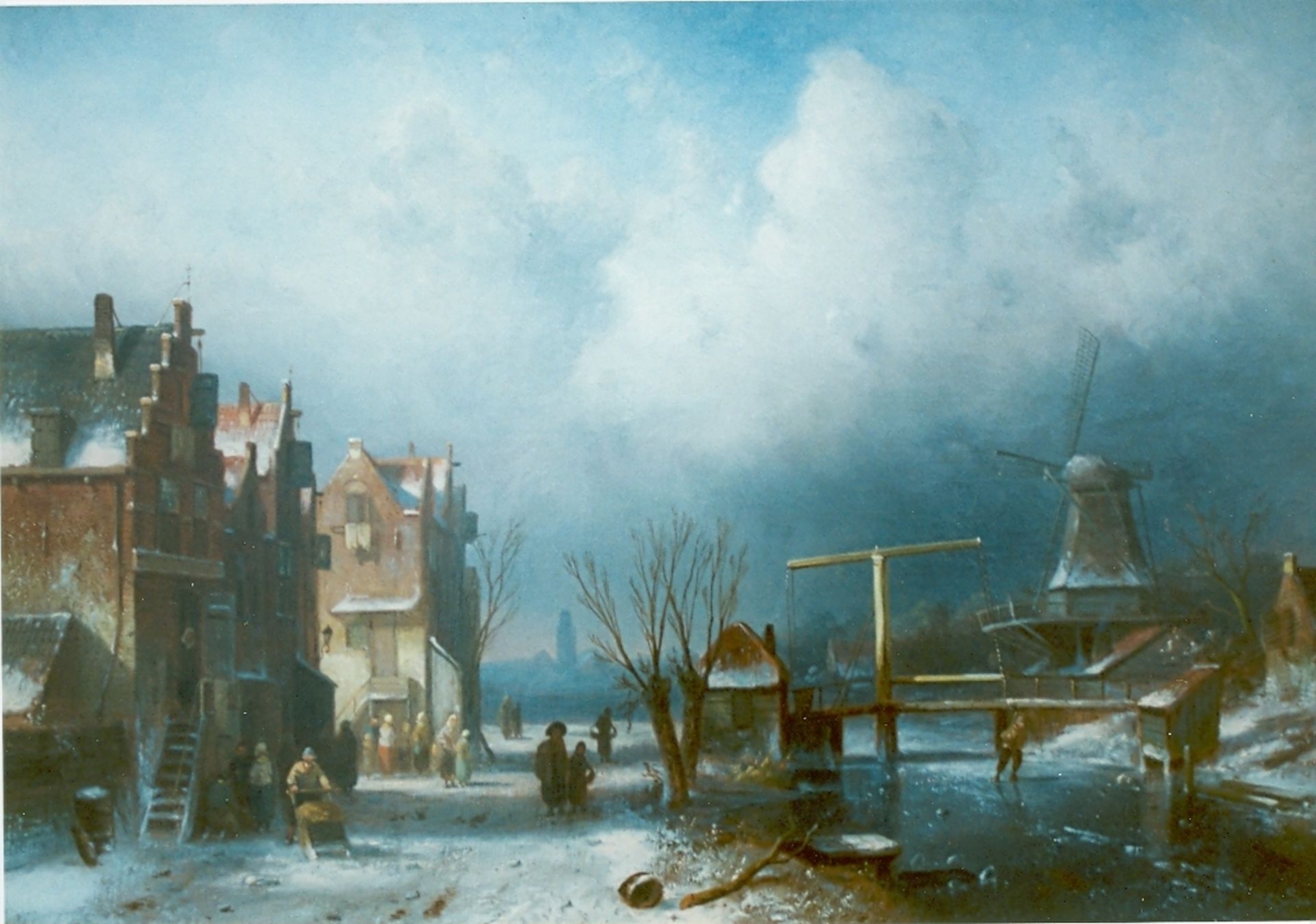 Charles Leickert kunstwerk • schilderij • voorheen te koop Hollands wintergezicht