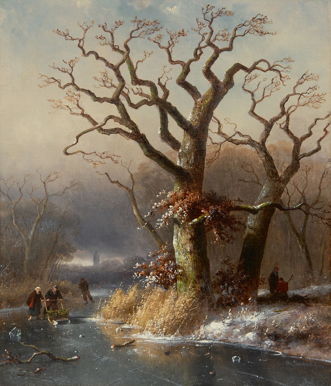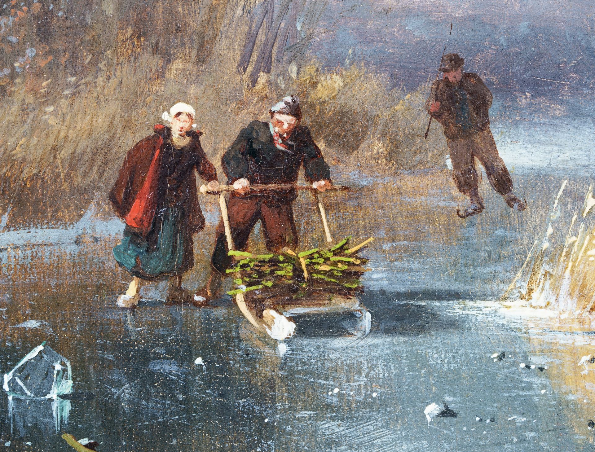 Charles Leickert kunstwerk • schilderij • te koop IJsgezicht met houtsprokkelaars