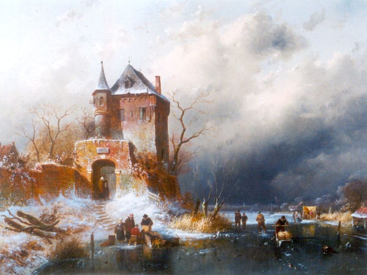Charles Leickert kunstwerk • schilderij • voorheen te koop IJzige koude op een bevroren rivier