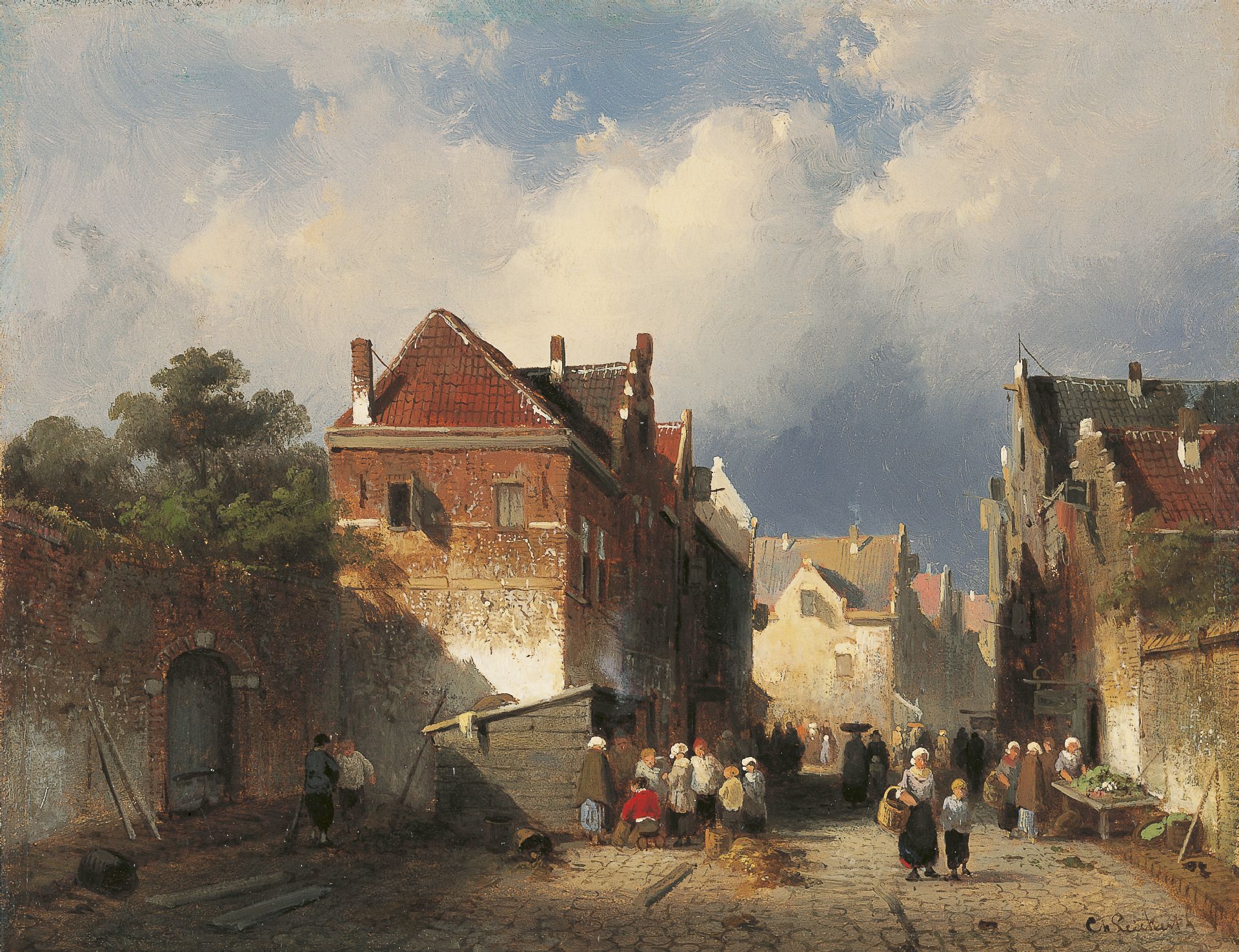 Charles Leickert kunstwerk • schilderij • voorheen te koop Marktdag