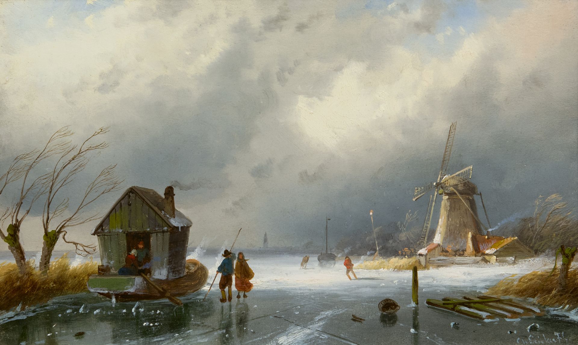 Charles Leickert was korte tijd leerling van W.J.J. Nuijen en vanaf 1839 van Andreas Schelfhout. Vooral deze laatste meester had veel invloed op zijn werk. Leickert schilderde prachtige Hollandse ijsgezichten, zomerse landschappen en riviergezichten waarin hij allerlei motieven verwerkte uit zijn schetsboeken. Na 1845 schilderde hij ook strandtaferelen en stadsgezichten. De aantrekkingskracht van zijn schilderijen wordt onder andere bepaald door de lichtval en sterk verhalende details. Leickert was een echte vakman, die op knappe wijze de juiste stemming kon weergeven en daarmee de smaak van het publiek goed aanvoelde. Zijn wintergezichten zijn echt koud, zijn zomers zonnig en groen.