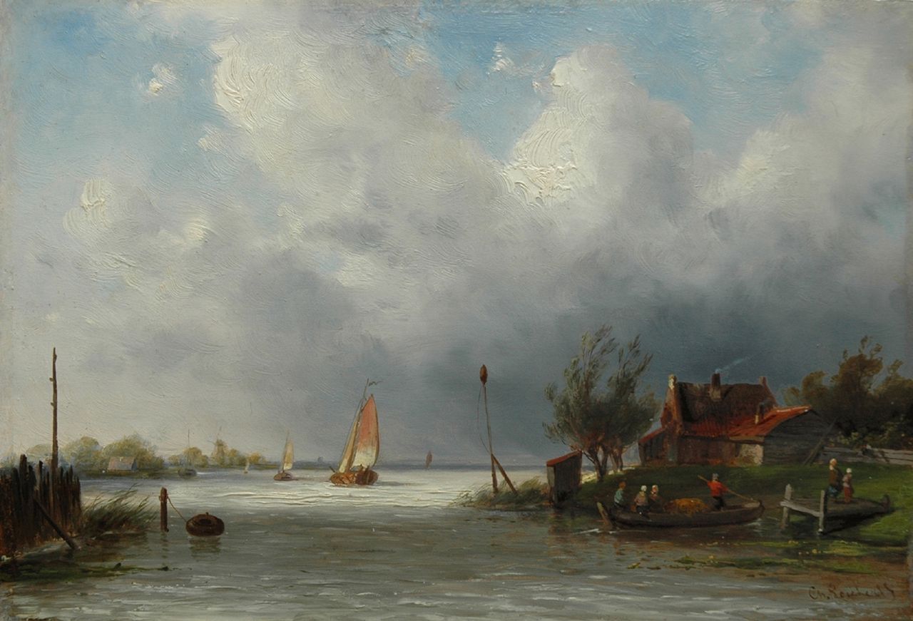 Charles Leickert kunstwerk • schilderij • voorheen te koop Rivierarm met overzetveer