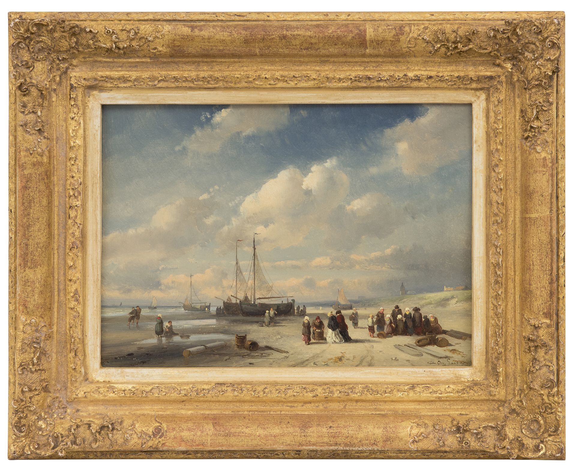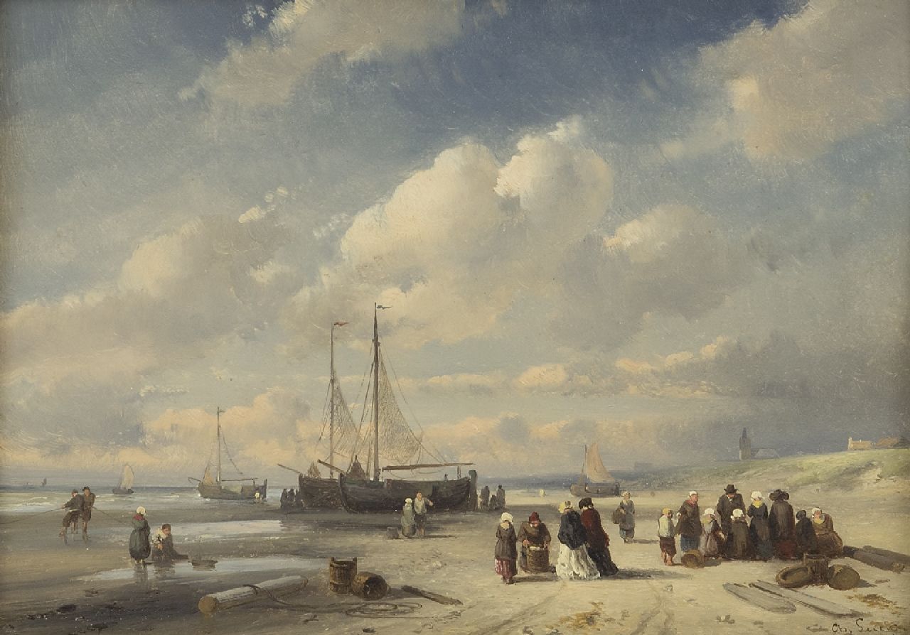 Charles Leickert kunstwerk • schilderij • te koop Visafslag op het strand van Scheveningen