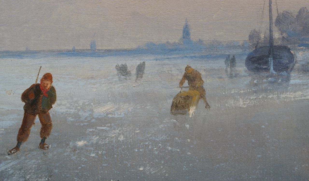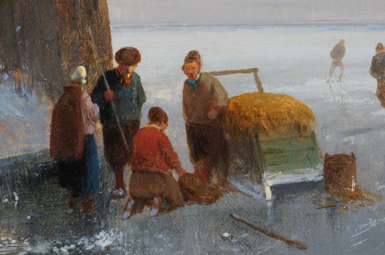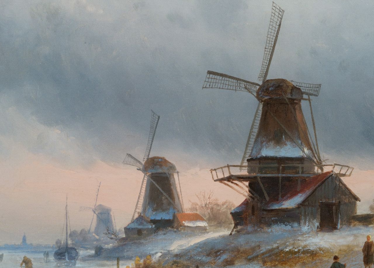 Charles Leickert kunstwerk • schilderij • te koop Winterlandschap met figuren op een bevroren rivier