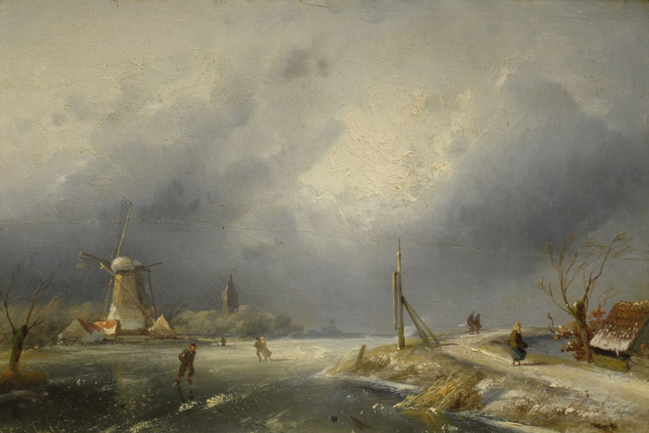 Charles Leickert kunstwerk • schilderij • voorheen te koop Winterlandschap met molen