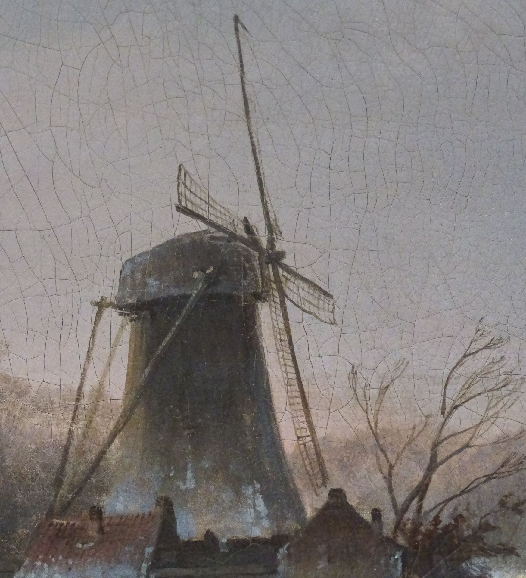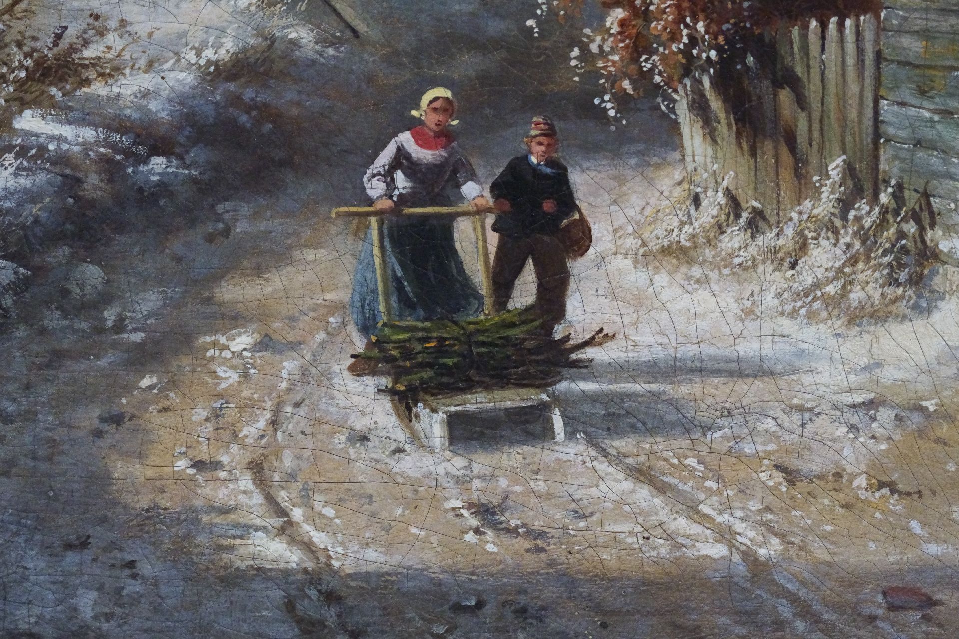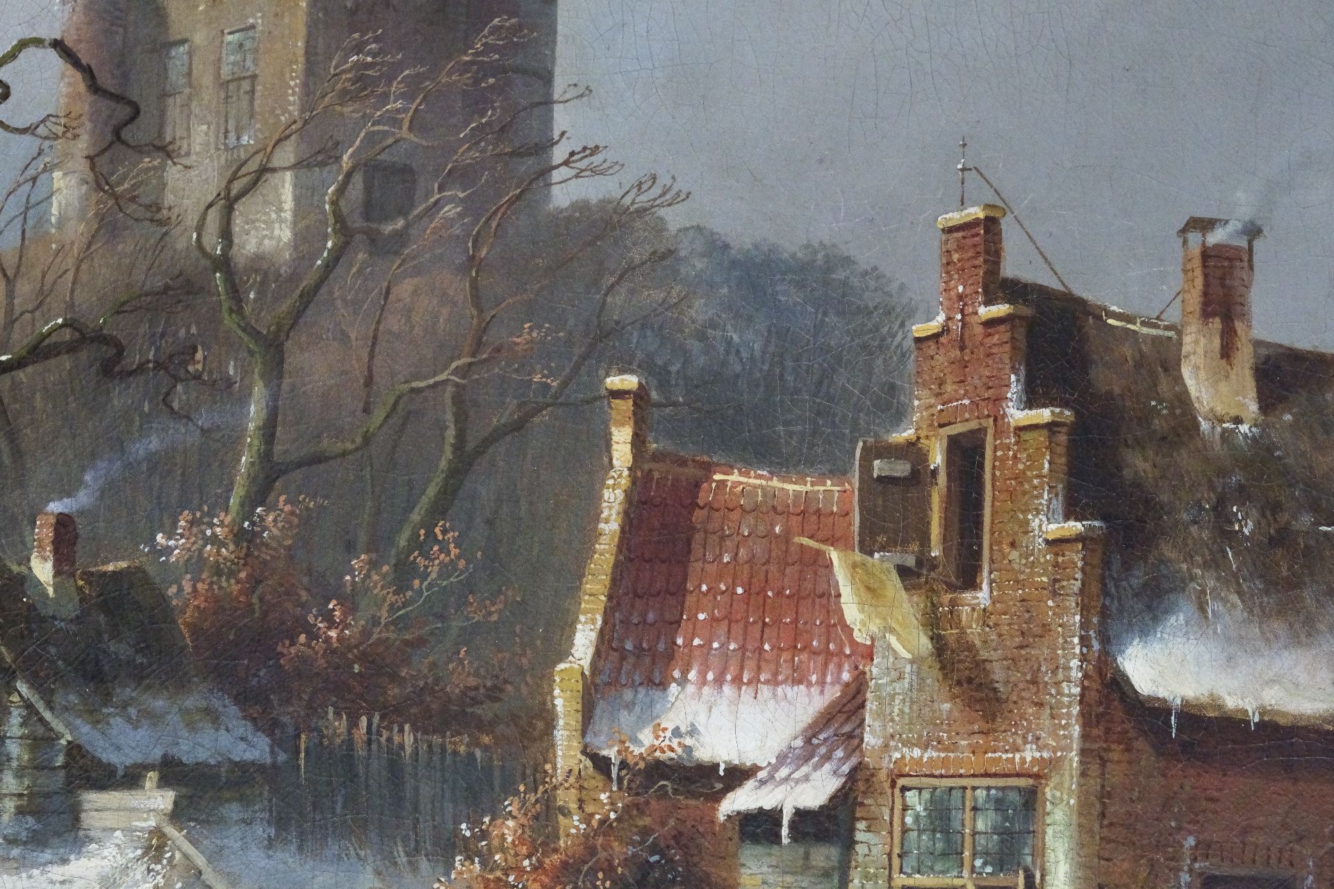 Charles Leickert kunstwerk • schilderij • voorheen te koop Winterlandschap met schaatsers en landvolk op een pad
