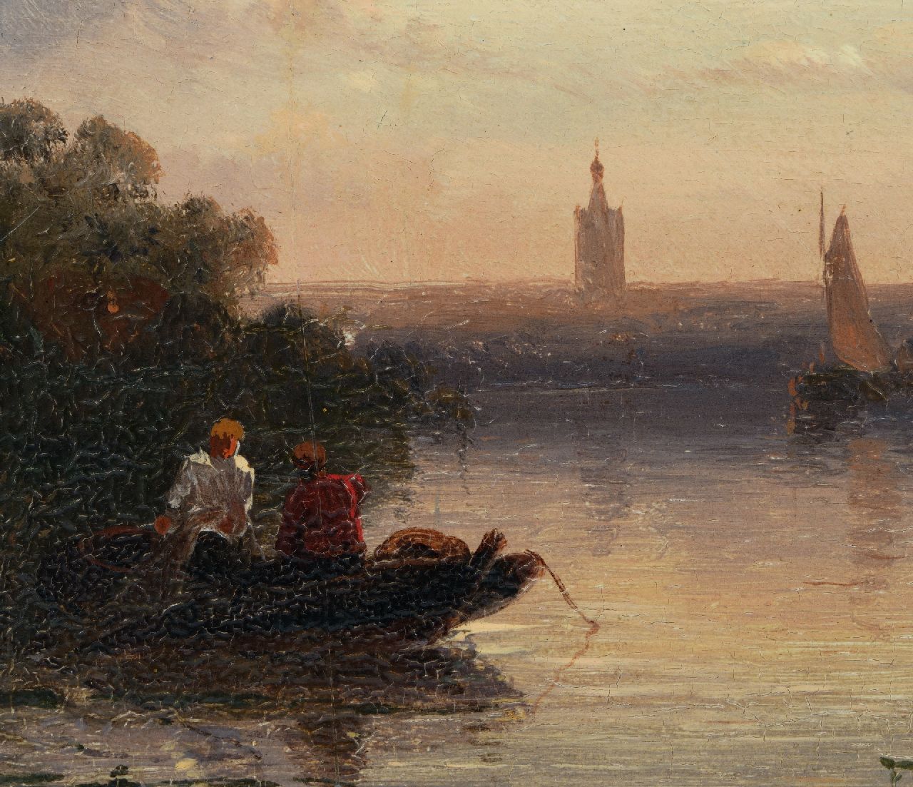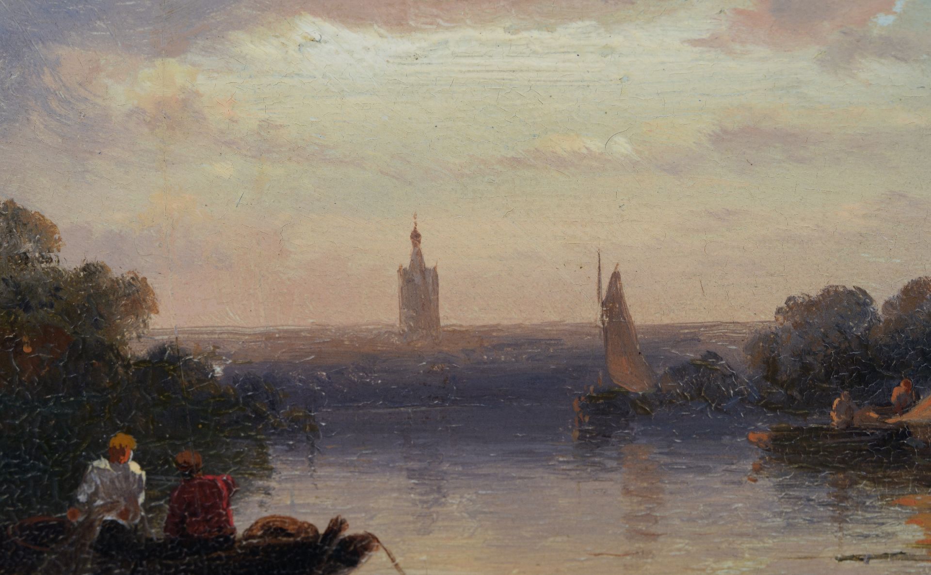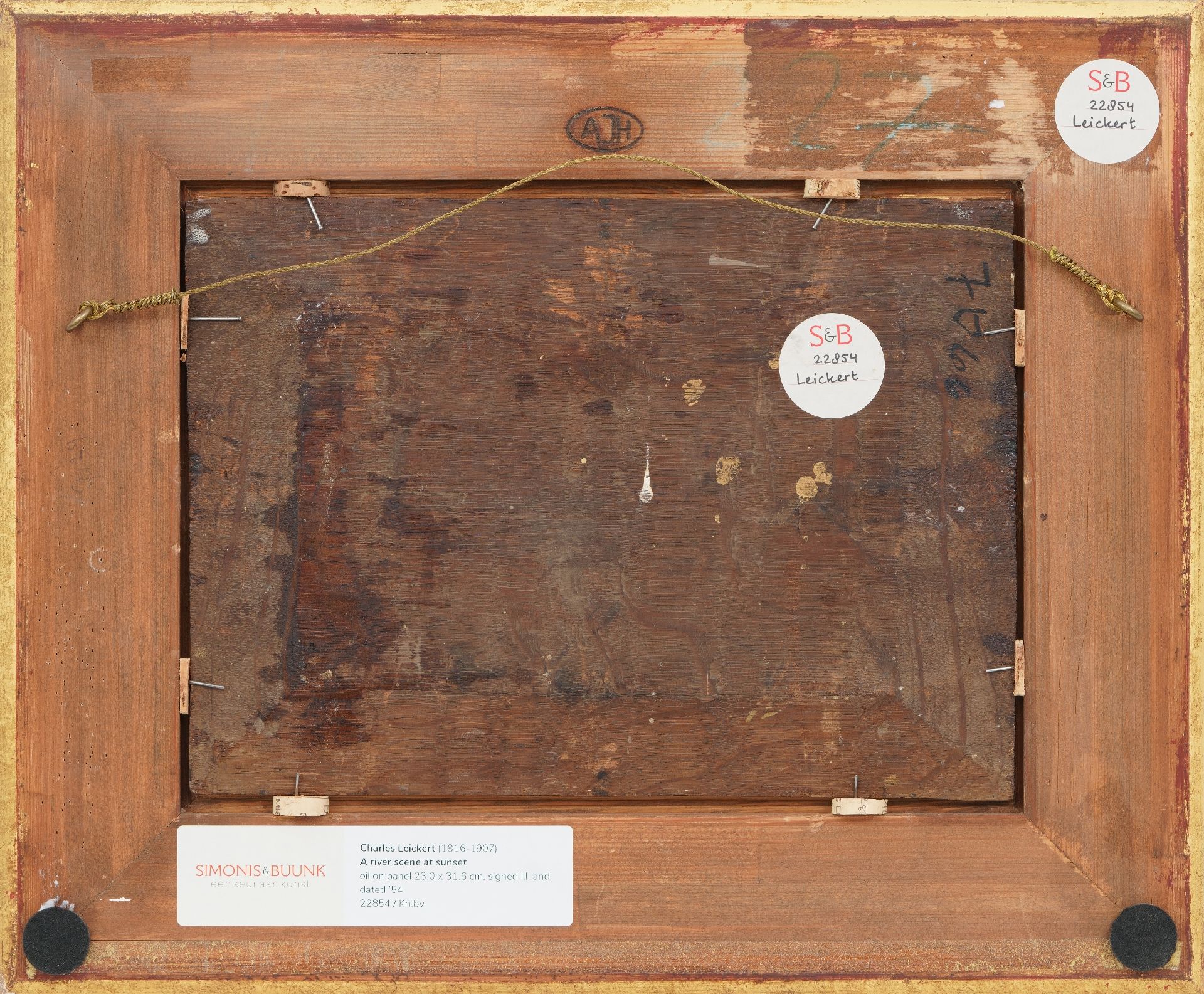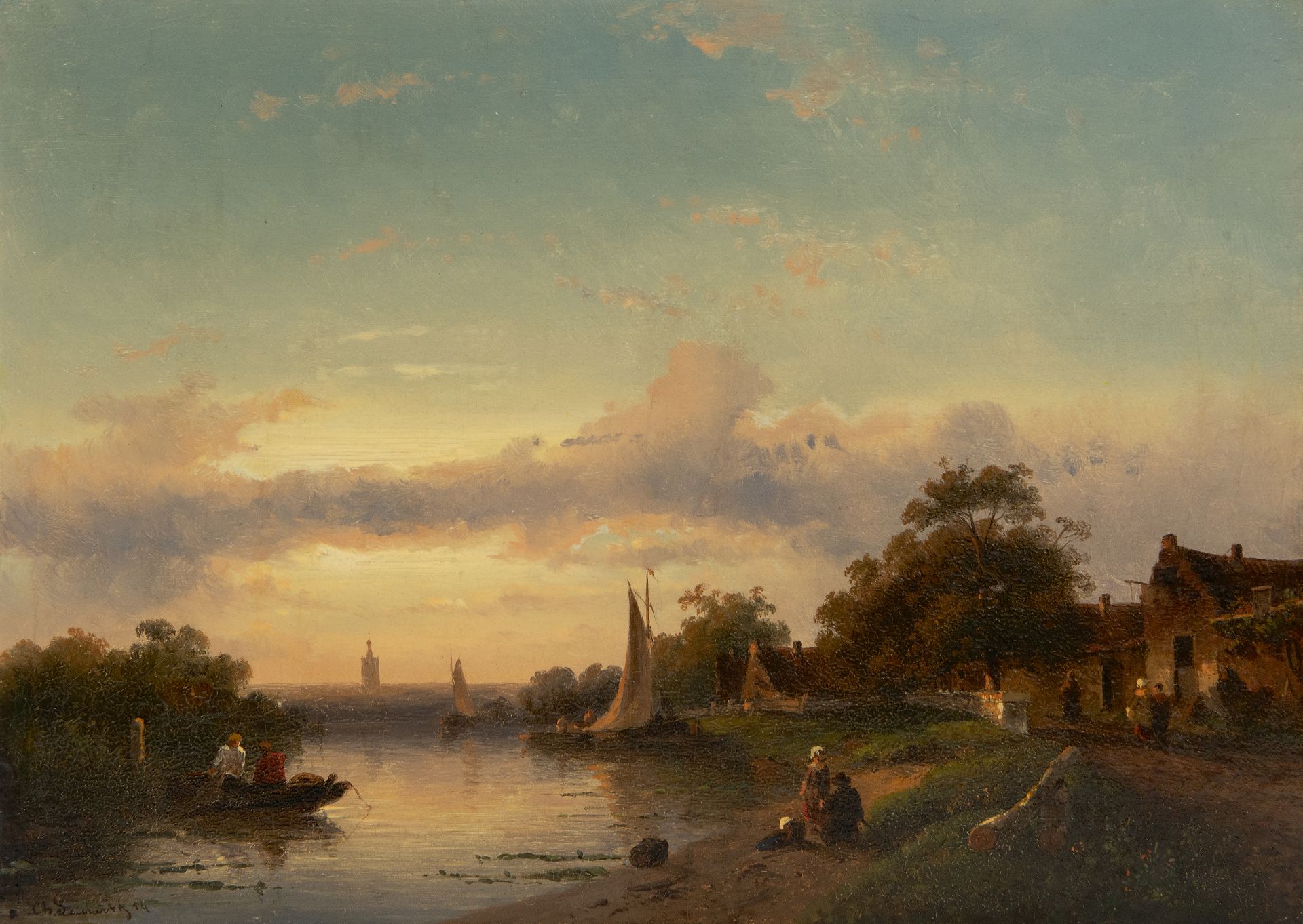 Charles Leickert kunstwerk • schilderij • te koop Zomers riviergezicht bij ondergaande zon