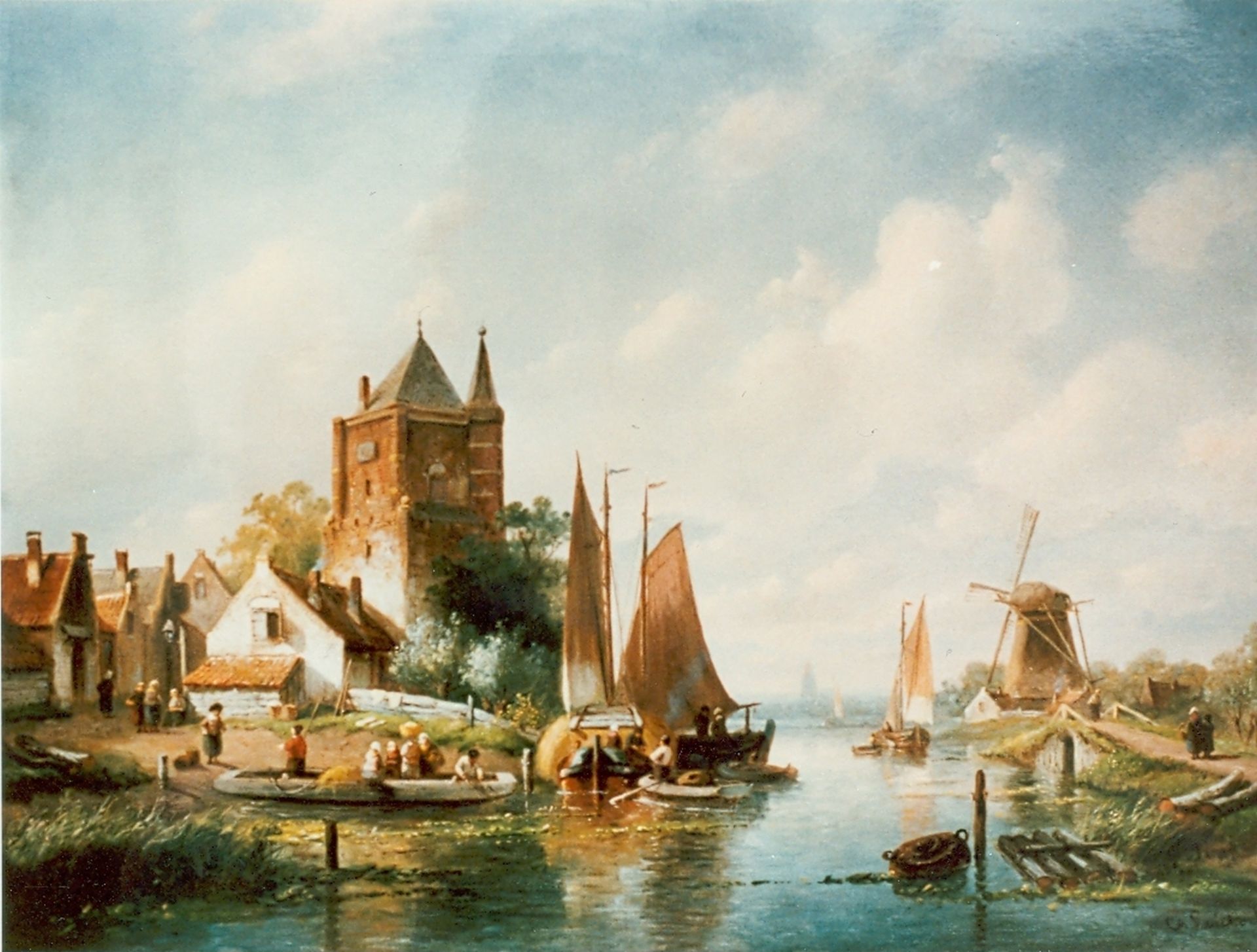 Charles Leickert kunstwerk • schilderij • voorheen te koop Zomers rivierlandschap