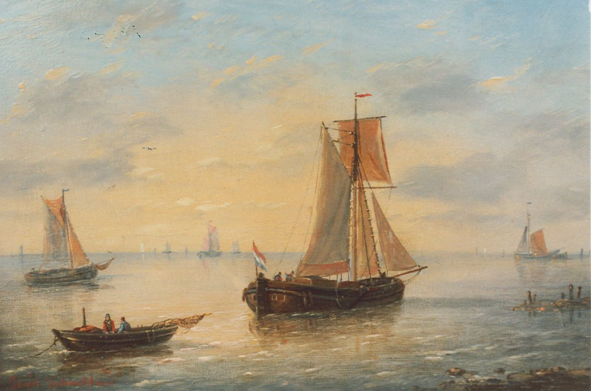 Charles Louis Verboeckhoven kunstwerk • schilderij • voorheen te koop Zeilboten op zee