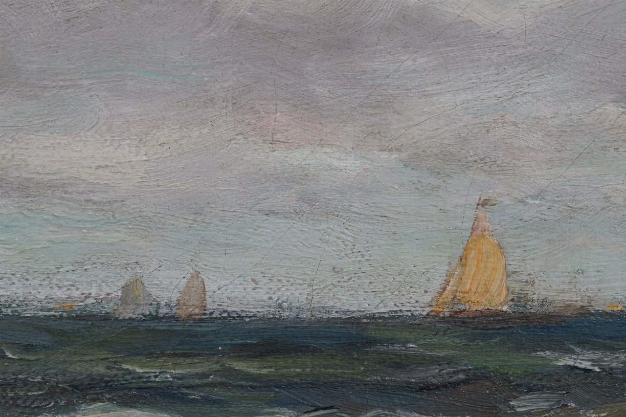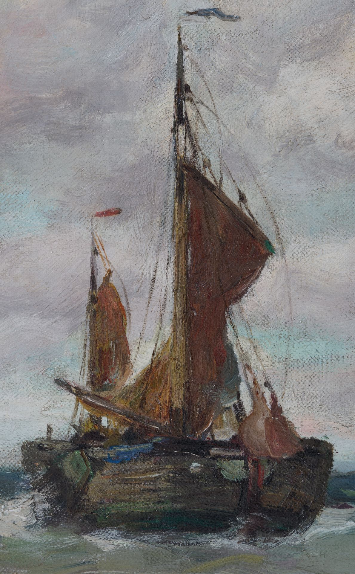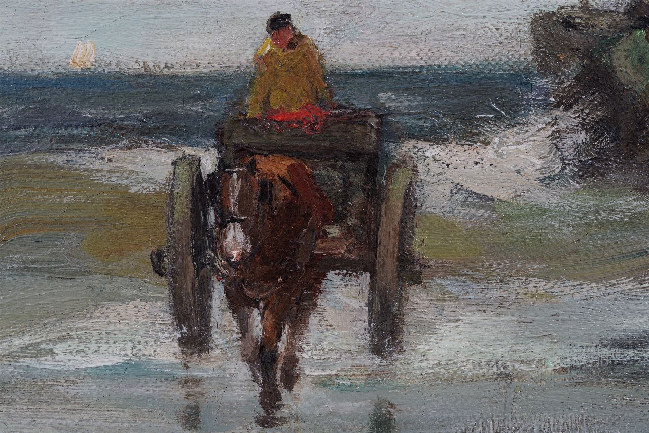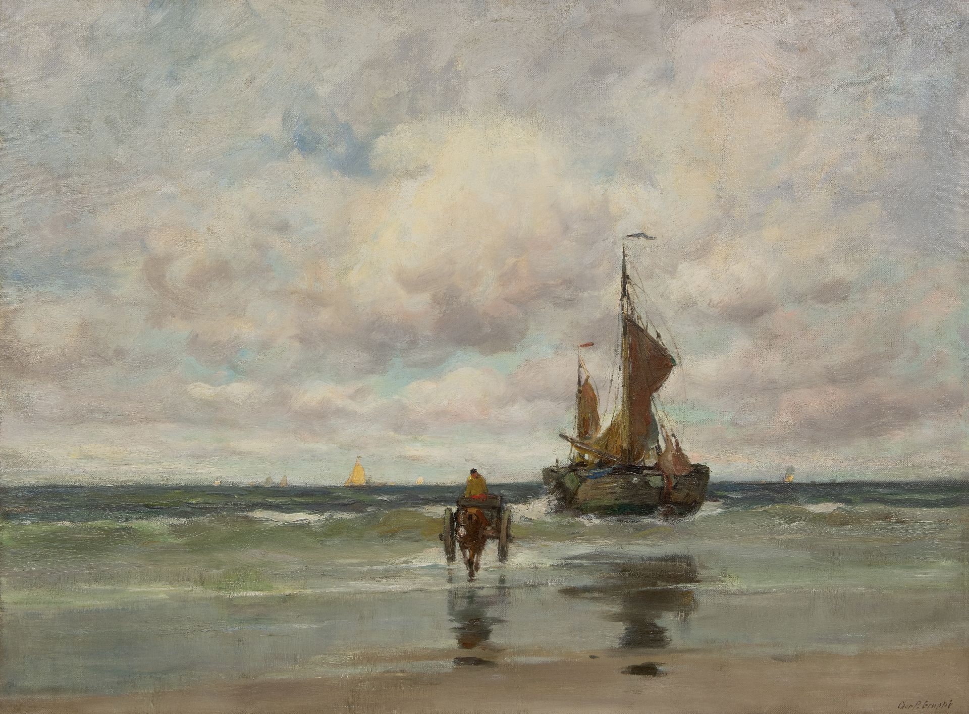 Charles Paul Gruppe kunstwerk • schilderij • te koop Bomschuit en schelpenvisser in de branding