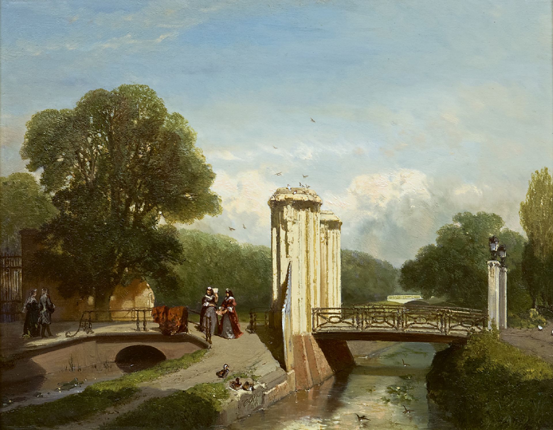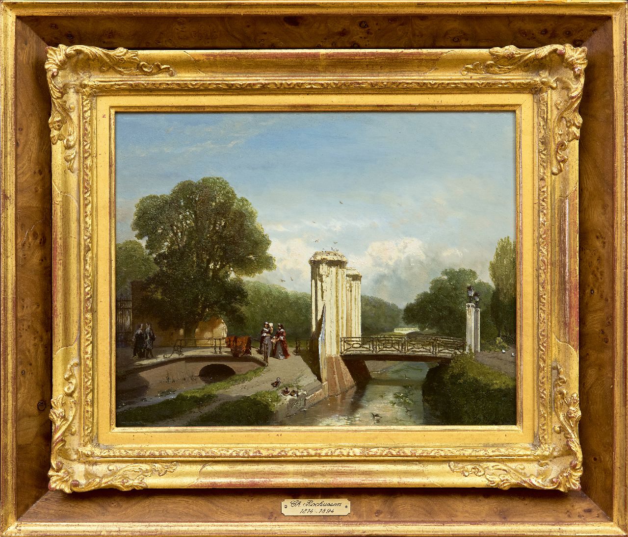 Charles Rochussen kunstwerk • schilderij • te koop Elegante figuren bij de ingang van een buitenplaats