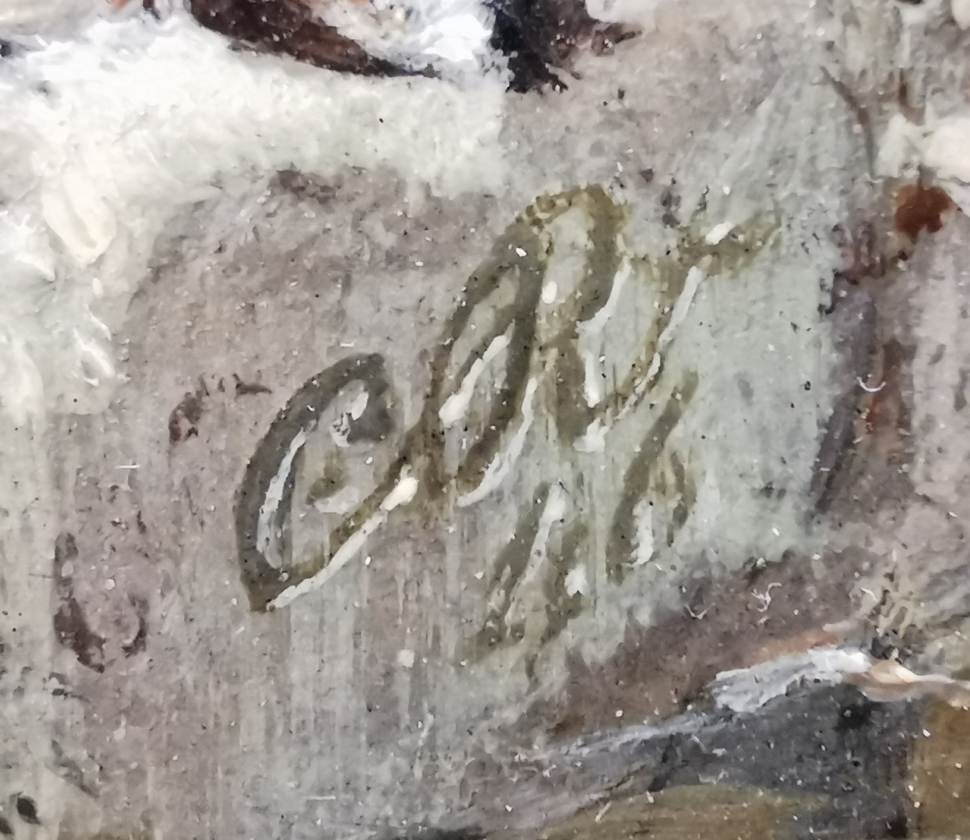 olieverf op paneel 23,7 x 31,2 cm, gesigneerd middenonder met initialen en gedateerd '46
