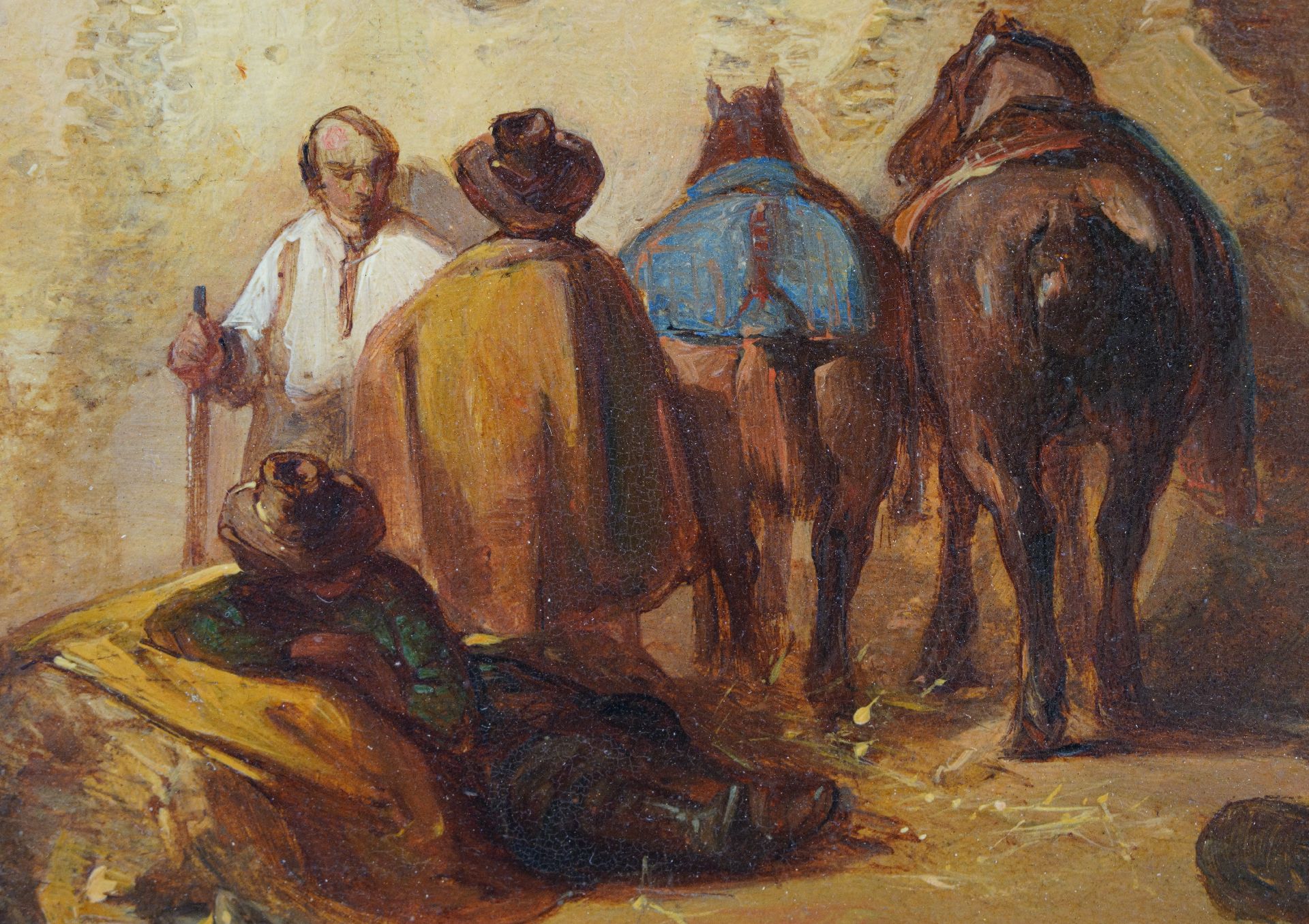 Charles Rochussen | Rustende reizigers bij een herberg (pendant), olieverf op paneel, 27,5 x 38,0 cm, gesigneerd m.o. en gedateerd '43