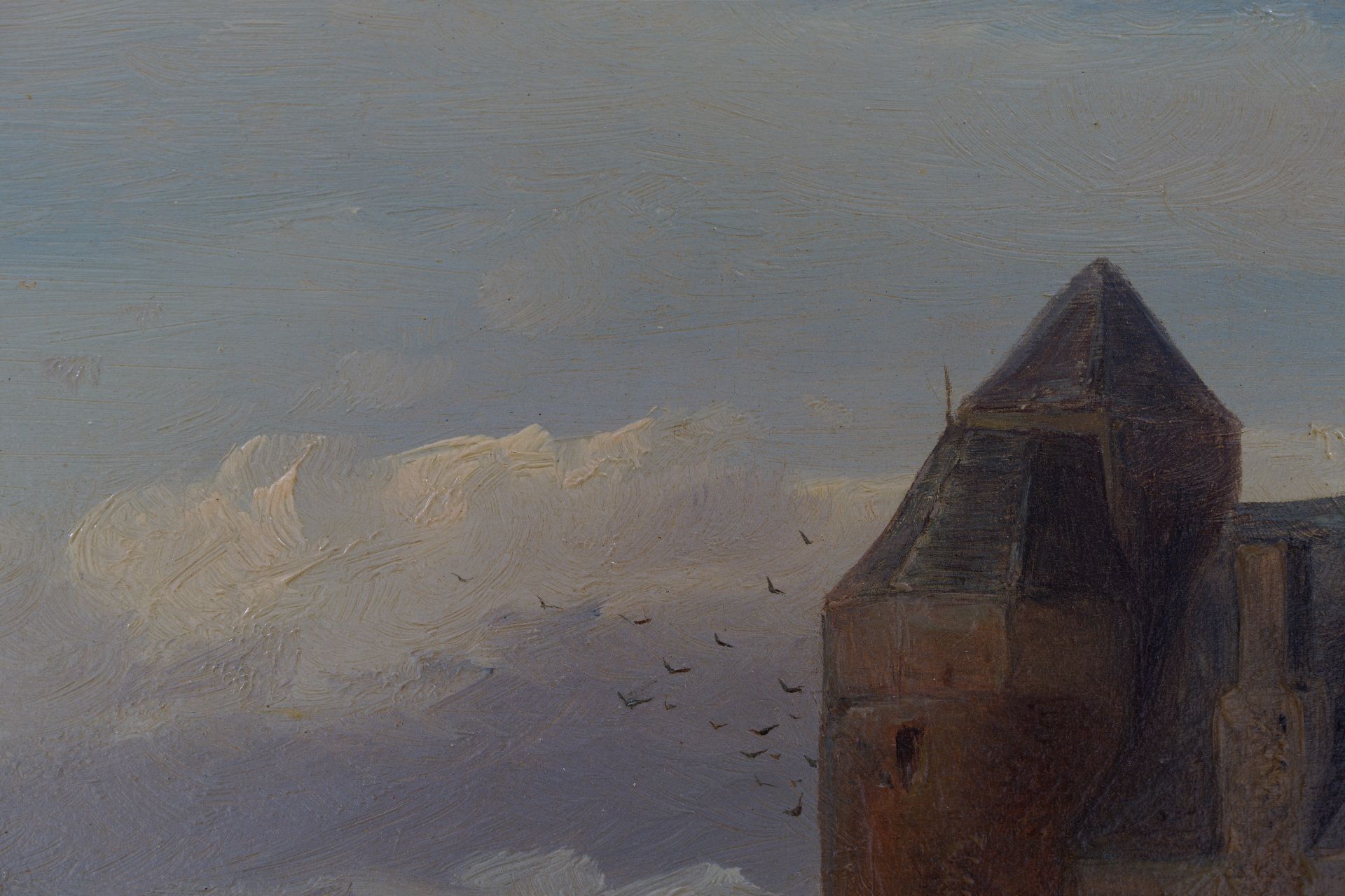 Charles Rochussen | Vrouw op een rots, mogelijk de Lorelei, olieverf op paneel, 22,7 x 17,5 cm, gesigneerd r.o. met monogram en verso voluit op etiket en te dateren ca. 1845