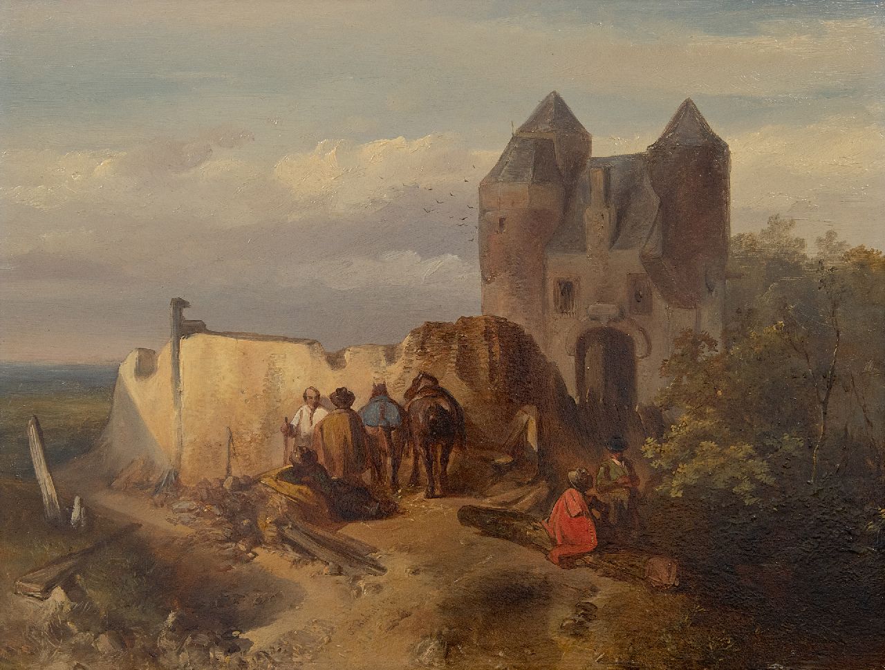 Charles Rochussen kunstwerk • schilderij • te koop Landschap met reizigers bij een ruïne (pendant)