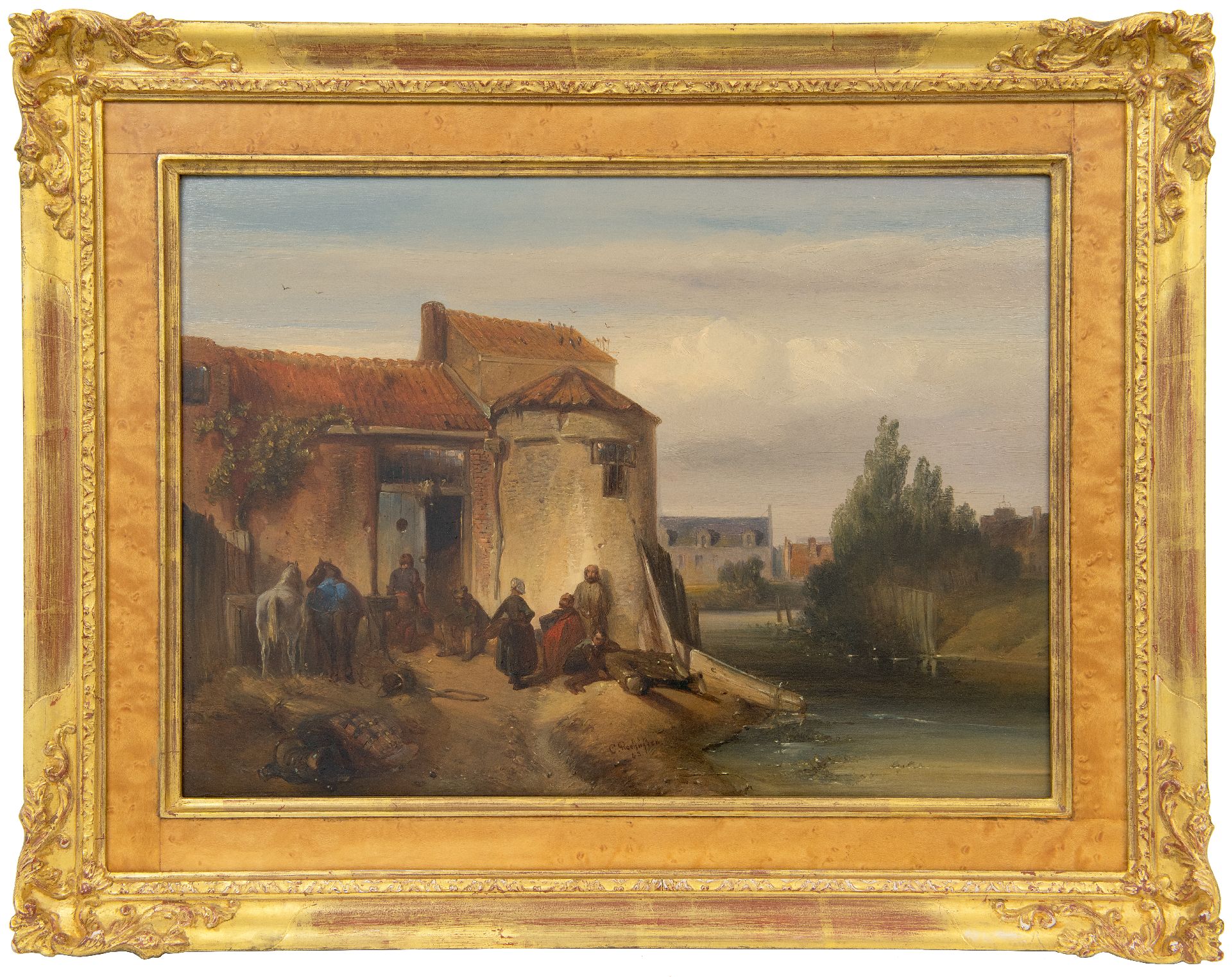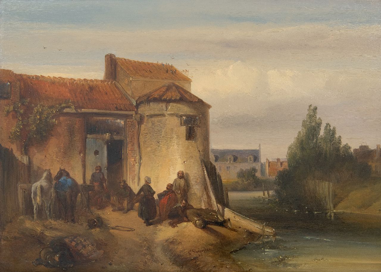 Charles Rochussen kunstwerk • schilderij • te koop Rustende reizigers bij een herberg (pendant)