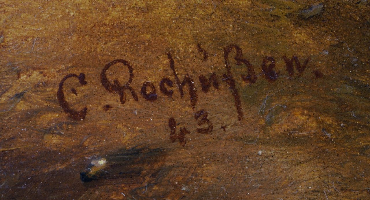 Charles Rochussen kwam uit een welgestelde familie en koos pas op relatief late leeftijd voor het schildersvak. Hij schilderde vooral scènes uit de Hollandse geschiedenis en soldatentaferelen, waarbij zijn grote kennis van historische kostuums en uniformen hem goed van pas kwam. Ook koos hij als onderwerp het tijdverdrijf van de Hollandse society, zoals de harddraverij, valkenjacht en zeilwedstrijden. Rochussen was een vaardig lithograaf en illustreerde vele boeken.