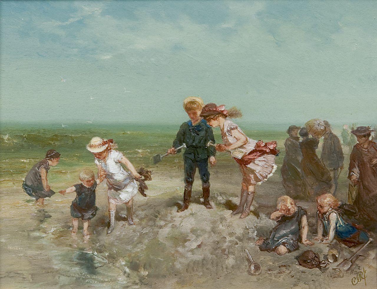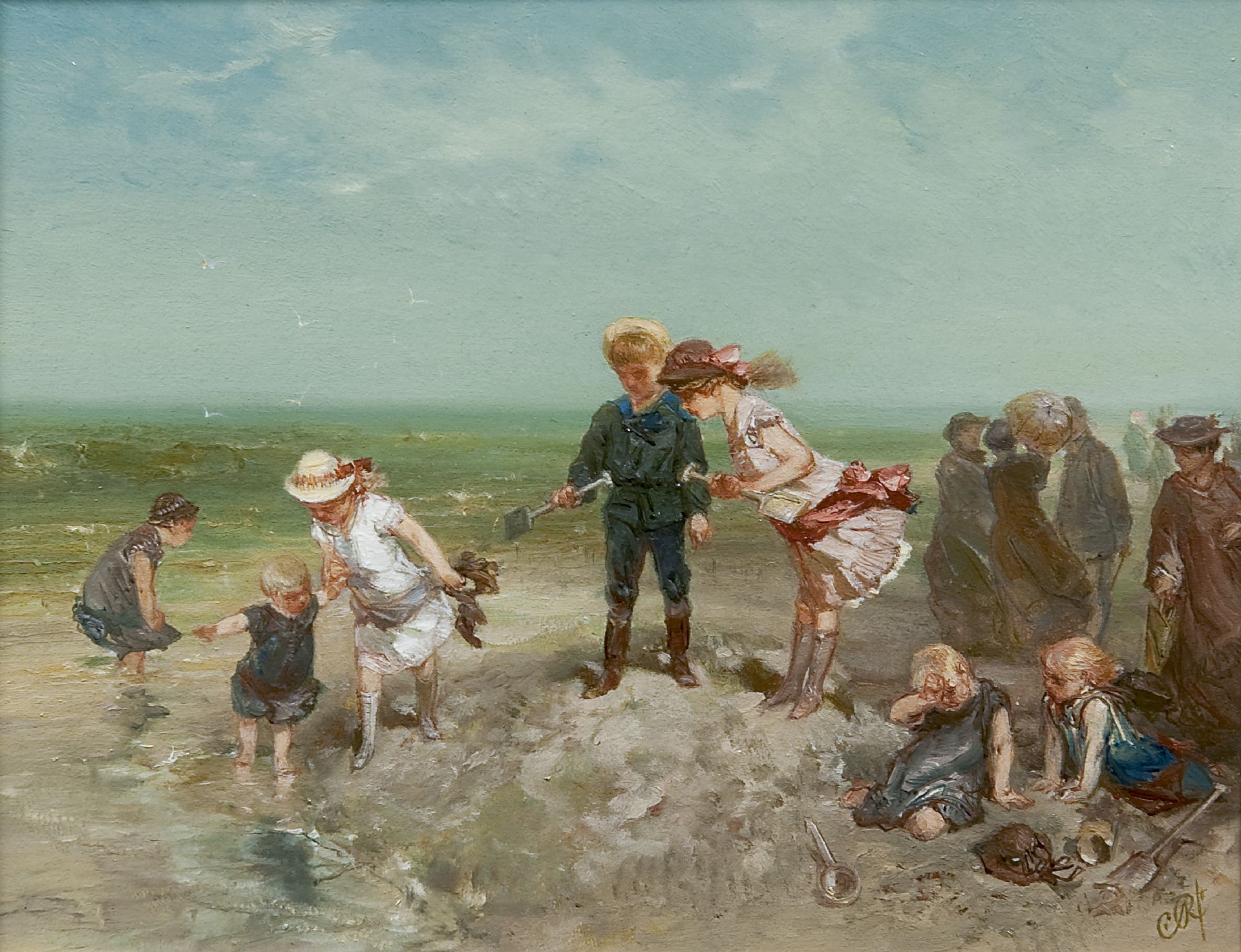 Charles Rochussen kunstwerk • schilderij • voorheen te koop Spelende stadskinderen op het strand