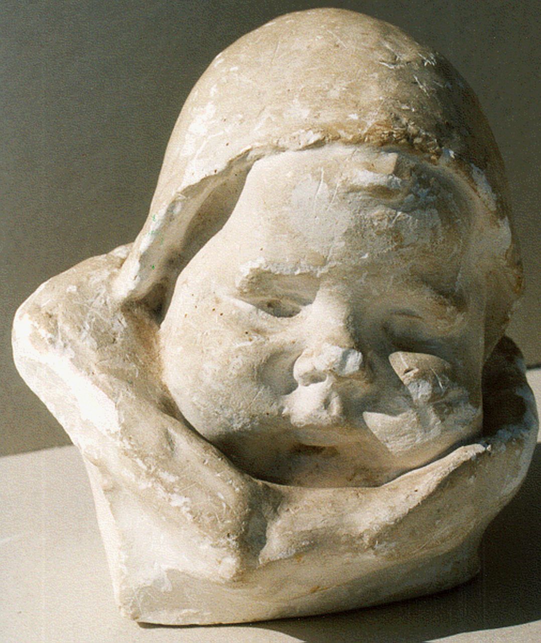 Charles van Wijk kunstwerk • beeld • sculptuur • voorheen te koop Babykopje met mutsje