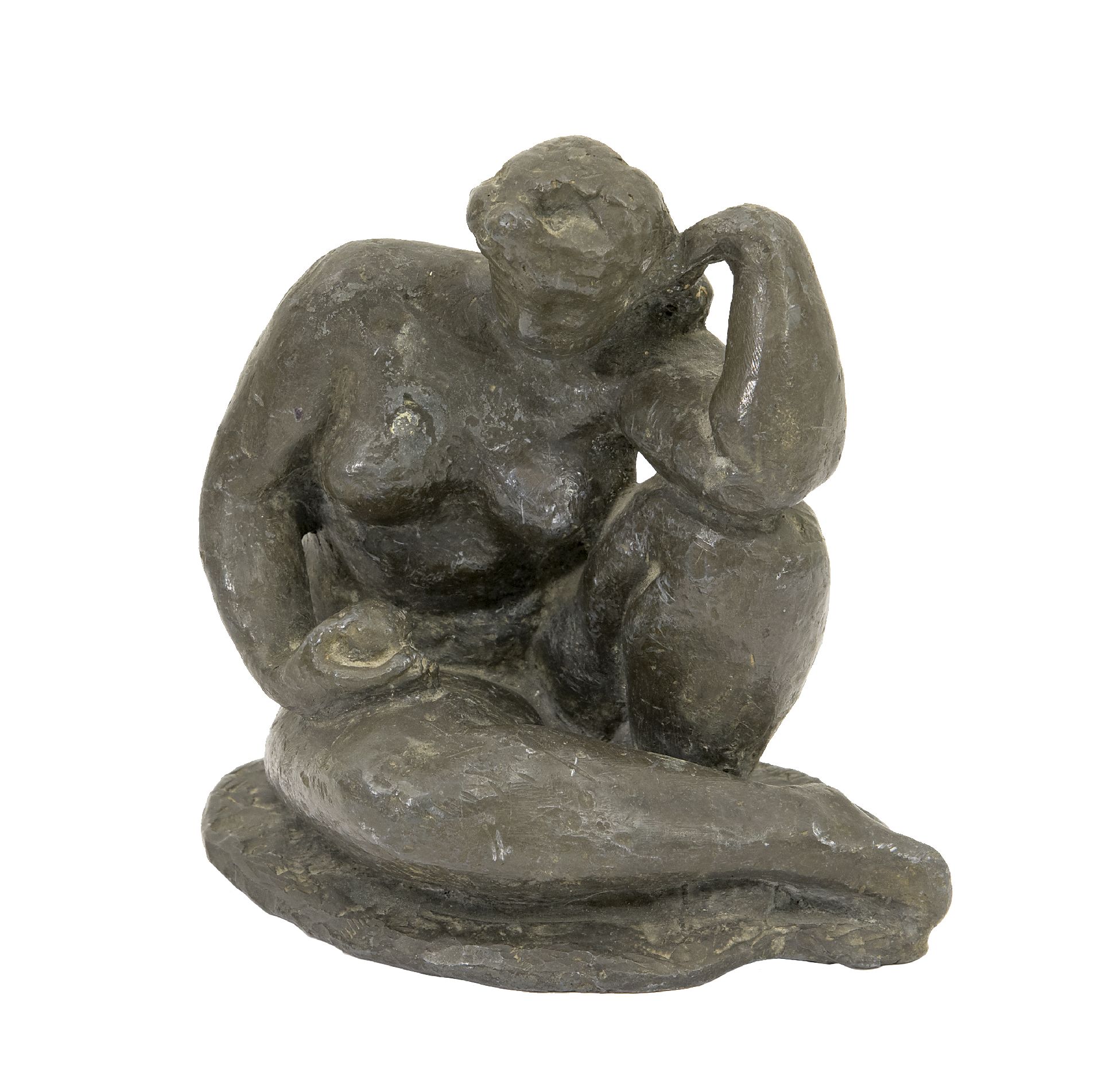 Charlotte van Pallandt kunstwerk • beeld • sculptuur • voorheen te koop Zittende figuur met appel