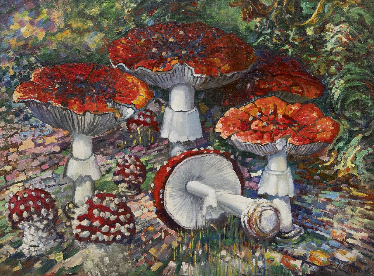 Chris Lanooy kunstwerk • schilderij • voorheen te koop Vliegenzwammen
