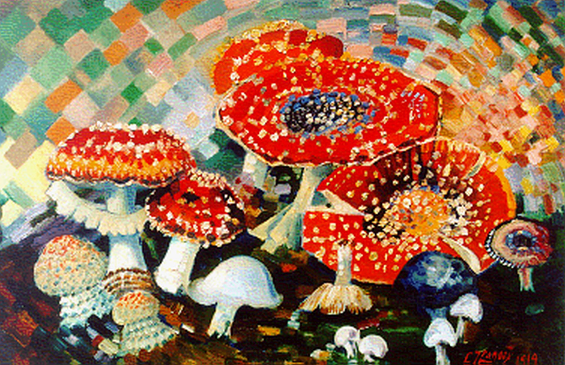 Chris Lanooy kunstwerk • schilderij • voorheen te koop Vliegezwammen en andere