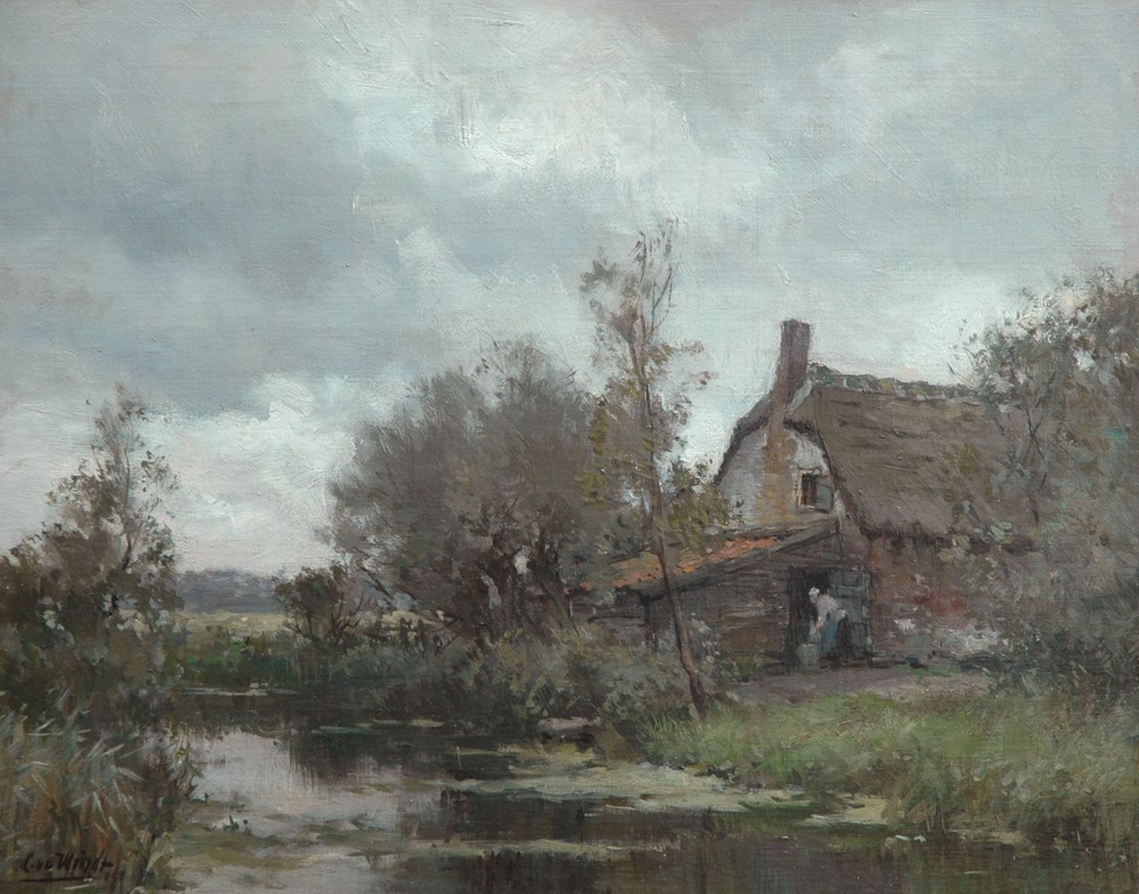 Chris van der Windt kunstwerk • schilderij • voorheen te koop Boerderij aan een vaart