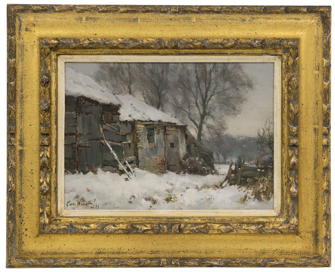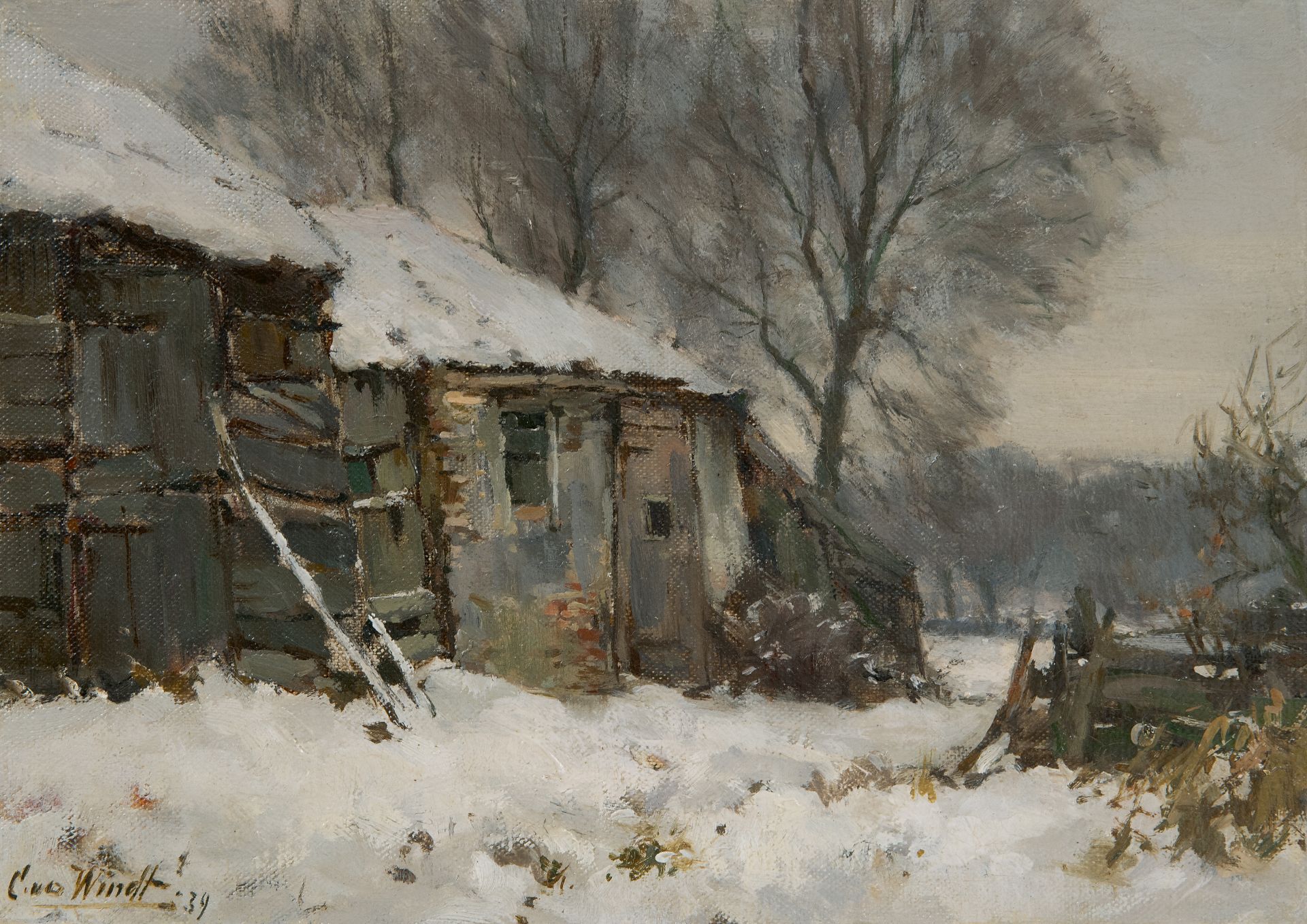 Chris van der Windt kunstwerk • schilderij • voorheen te koop Boerderij in de sneeuw