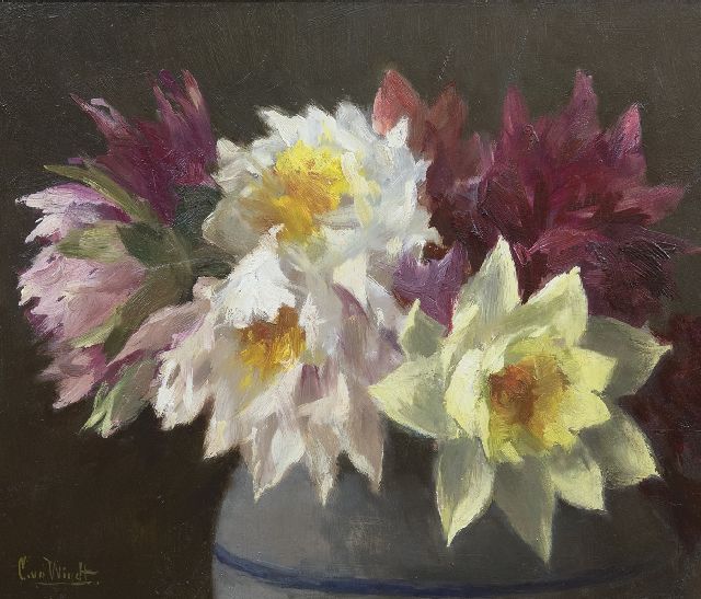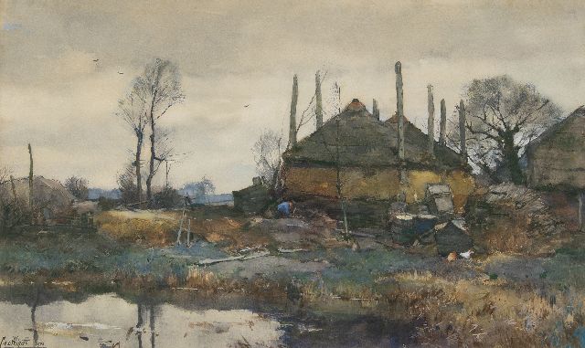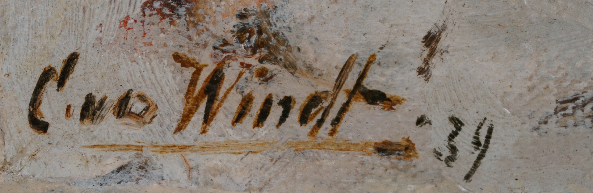 Het werk van de Leidse schilder Chris van der Windt is sterk verwant aan dat van de Haagse School. Hij werkte vaak 'en plein air' en meende dat ook de aquareltechniek zich er uitstekend voor leende om de typische atmosfeer van het Hollandse waterlandschap weer te geven. Zijn geliefde onderwerp was het 'intieme boerenerf': een 'close-up' van een hoekje van een boerenerf met een enkel figuurtje, drogend wasgoed of een oplichtend kapje als blikvanger. Ook schilderde hij dieren en stillevens in schitterende kleuren. Veel van zijn werk werd in Engeland en Canada verkocht.