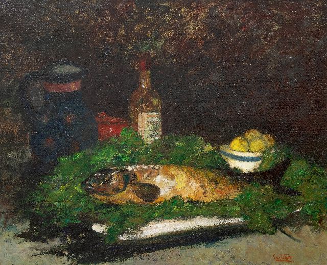 olieverf op doek op paneel 21,5 x 29,8 cm, gesigneerd linksonder en gedateerd '39