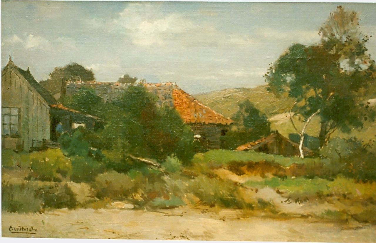 Het werk van de Leidse schilder Chris van der Windt is sterk verwant aan dat van de Haagse School. Hij werkte vaak 'en plein air' en meende dat ook de aquareltechniek zich er uitstekend voor leende om de typische atmosfeer van het Hollandse waterlandschap weer te geven. Zijn geliefde onderwerp was het 'intieme boerenerf': een 'close-up' van een hoekje van een boerenerf met een enkel figuurtje, drogend wasgoed of een oplichtend kapje als blikvanger. Ook schilderde hij dieren en stillevens in schitterende kleuren. Veel van zijn werk werd in Engeland en Canada verkocht.