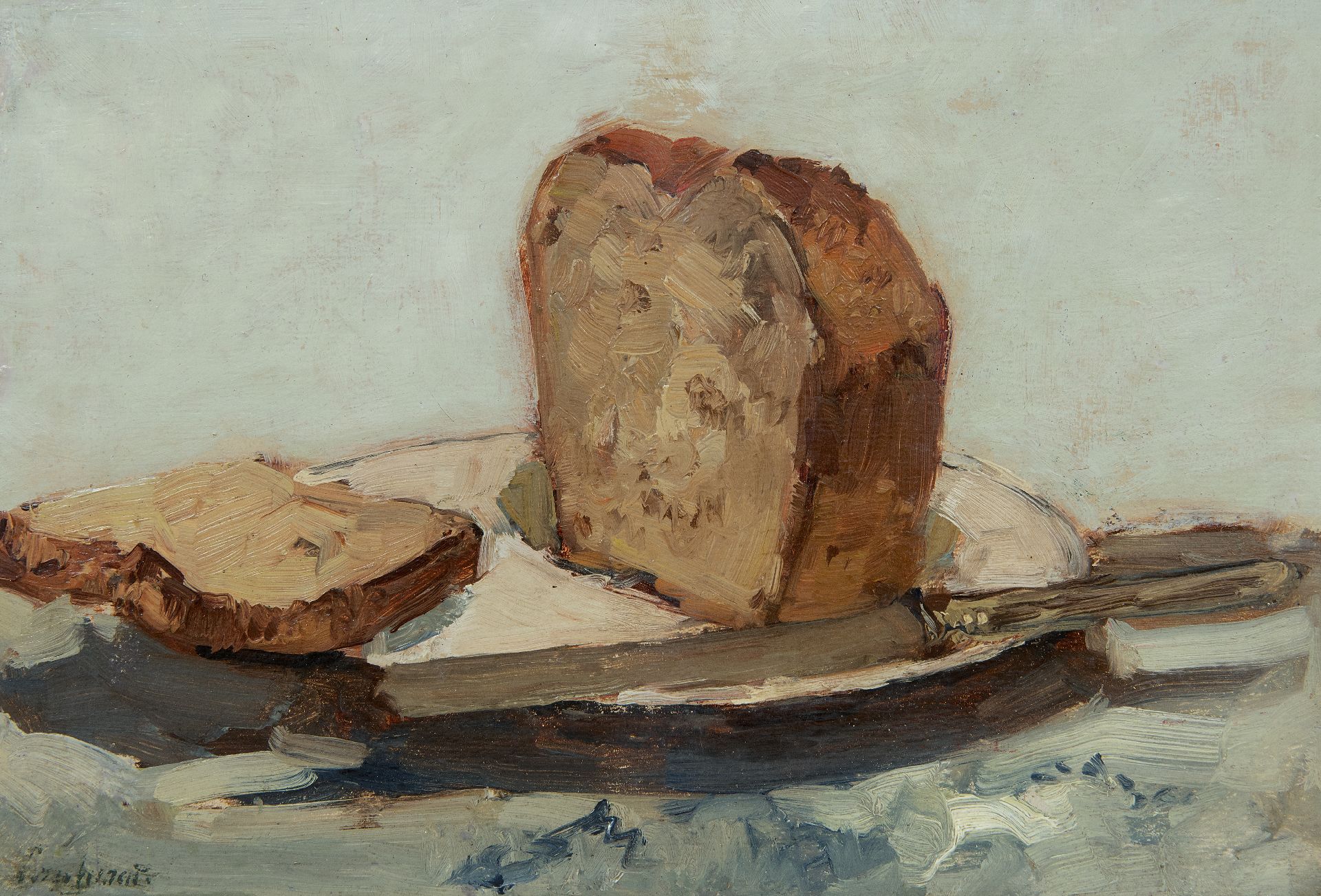 Chris van der Windt kunstwerk • schilderij • voorheen te koop Stilleven met aangesneden brood