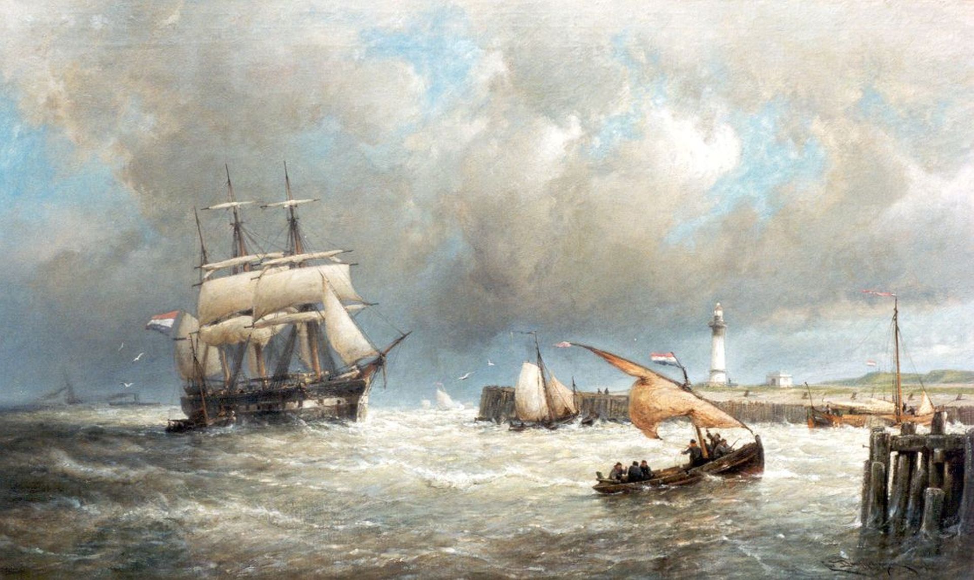 Christiaan Dommelshuizen kunstwerk • schilderij • voorheen te koop Havenmonding van Hellevoetsluis